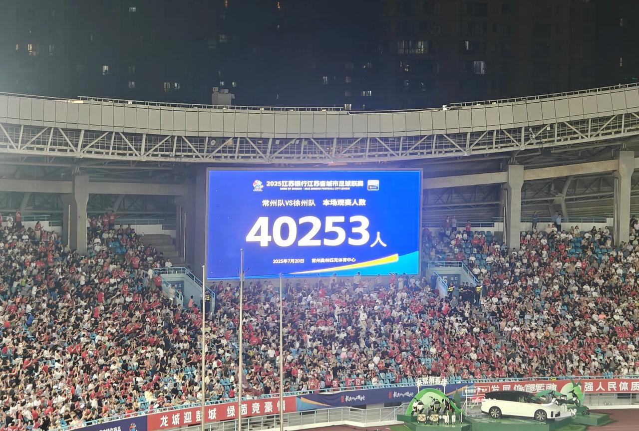 昨晚常州奥体中心, 涌入了40253名观众, 一起大声高唱国歌, 真是感动到热泪盈眶。 虽然常州队拼到了最后一秒, 但还是以0:2的比分憾负对手, 依旧未能改写进球荒, 但球员们不放弃的精神面貌, 真让人为之动容。 我是第一次抢到票, 到现场看常州队比赛, 感觉常州队员虽然很拼, 但射门次数不多, 而且脚头也不够硬。 反观徐州队, 有机会就打门, 而且脚头极硬。 另外常州队员体能还是要加强, 不然真是心有余而力不足, 机会出现了传球队员也看到了, 但每次都不到位或追不到球, 真让人着急。 还有一事不太明白, 赛前热身和中场休息时替补队员的热身, 好像没看到安排射门训练, 不知道为啥。 [奋斗]继续战斗!