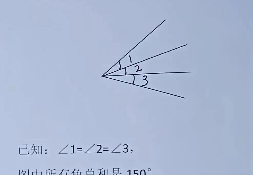 四年级角题难倒众人,关键在“数角”! 最近一道四年级几何题掀起讨论:已知∠1=∠2=∠3,图中所有角总和150°,求∠1度数。不少家长甚至高学历者都栽了,核心陷阱是 “数清所有角” ! 先拆解“所有角”: 总计 6个角 ,若漏数组合角,计算必然出错! 设∠1=∠2=∠3=x,则: - 单个角和:3x; - 两个组合角和:(x+x)+(x+x)=4x; - 三个组合角和:x+x+x=3x; 总和为 3x+4x+3x=10x 。 由10x=150°,得x=15°。 这题看似考角度计算,实则练 “有序思维” :数角按“单个→组合”分层,避免混乱。数学的妙处,就藏在这些细节里——学会分类归纳,难题也能秒解!
