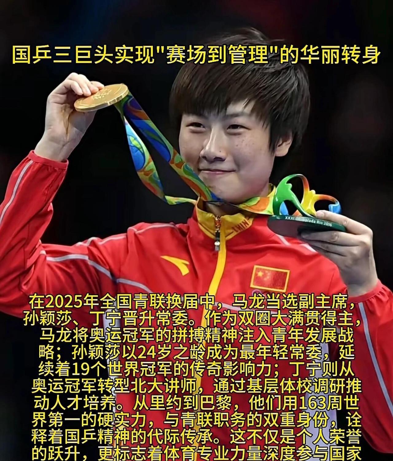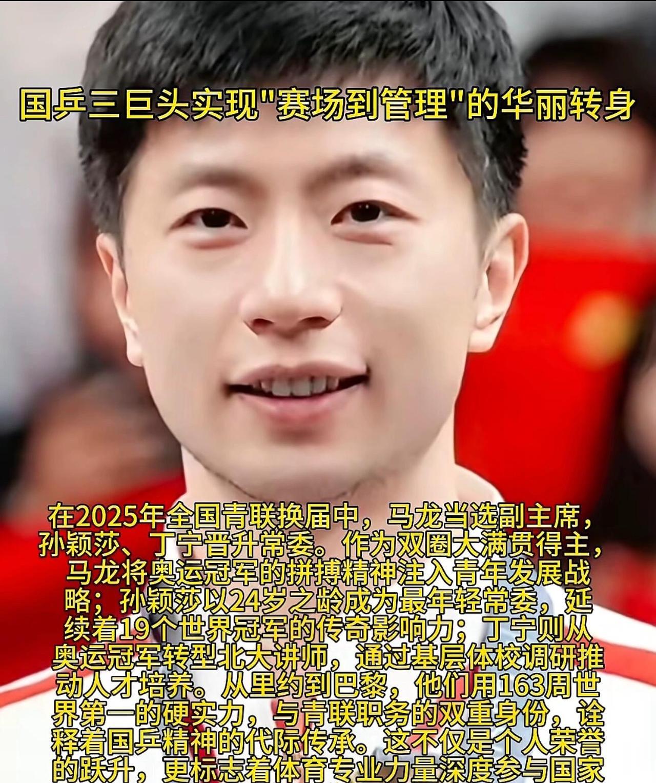 恭喜国乒的三大巨头马龙、孙颖莎、丁宁荣获全国青联副主席和常务委员会委员职位![赞][赞][赞]