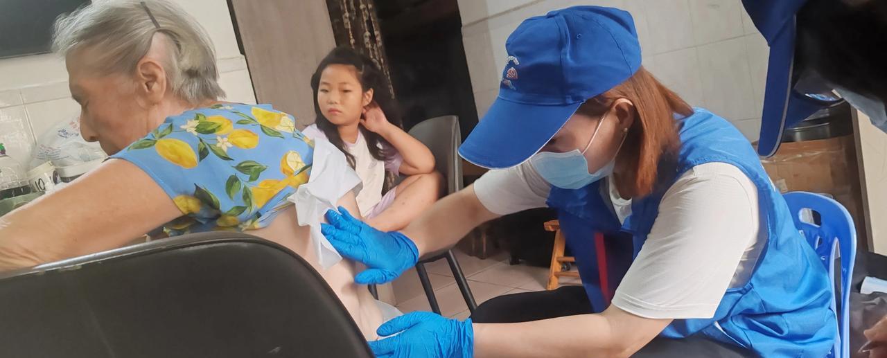 感谢社区工作志愿者上午上门为老母亲做日常保健,测血压,血氧都挺正常,在左右膝盖上贴膏药除湿。检测了母亲的双肩,颈椎都没问题。听闻母亲腰椎有点疼,帮放精油推拿按摩舒筋活血。帮剪手指甲,脚趾甲。临走的时候还送了一盒活血祛痛的膏药和2个贴喉咙的药贴。赠人玫瑰,手留余香。[玫瑰][玫瑰][玫瑰] 我和孩子也没少做义工并且会一直做下去,和谐社会,人人都有爱,都愿意付出爱。爱出者爱返,福往者福来。
