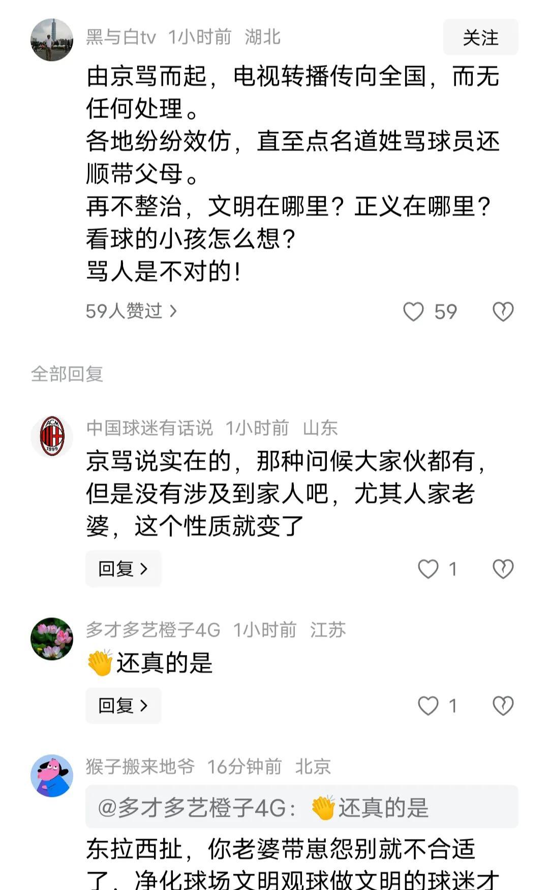 成都蓉城俱乐部凌晨一点转发中足联声明,该声明凌晨一点前发出,彰显了中足联的工作效率。 这一声明引来了大量关注,全国各地球迷给予了留言。 网名“风雨7512”的湖北球迷要求:“清除天津队的比赛资格,这种球队长期都是负面新闻,前几年打假球,默契球,今天举白旗,骂球员,难怪天津发展越来越差的,素质太差了。”这个留言得到了最多的点赞。 网民“佛度众生众生皆苦”的天津球迷坦言:“那天我在现场。天津的问题是大多数去看球的人的问题,全场男女老少,都在骂人。贼难听。” 可以这样说吧,能够在这种情况下勇敢而实事求是评论的天津球迷,一定是正义的、理性的,他们是真正希望天津足球发展的人。 有不少球迷则是呼吁中足联,不能光是嘴上谴责,私下和稀泥,需要有处罚,才能惩前毖后。 我们也看到了有山东球迷的委屈,他们提出了青岛西海岸曾经被“罚空场”的旧事,提醒中足联公平公正办事,面对问题不能欺小放大。 至于有天津本地球迷提到的个别严重情形的“已经抓了”,目前还没有看到公开的官方报道。