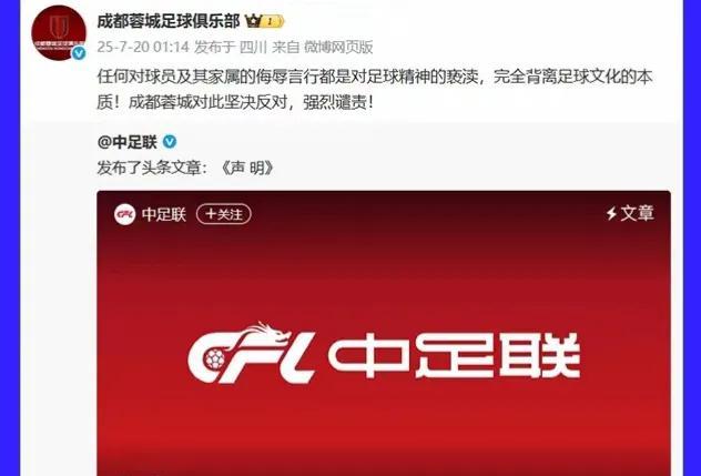 成都蓉城俱乐部凌晨一点转发中足联声明,该声明凌晨一点前发出,彰显了中足联的工作效