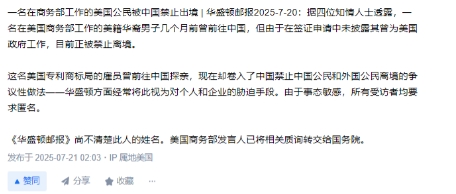 贼喊捉贼!美国《华盛顿邮报》7 月 20 号说中国不让一个美籍华裔男子离境,还扣上 “胁迫” 的帽子。可这人拿着美国商务部的铁饭碗,回中国探亲时在签证申请表上耍小聪明,压根没提自己为美国政府干活 —— 这可不是小事,中国的《出境入境管理法》写得明明白白,隐瞒公职身份申请签证,本身就涉嫌欺诈,不让走太正常了!