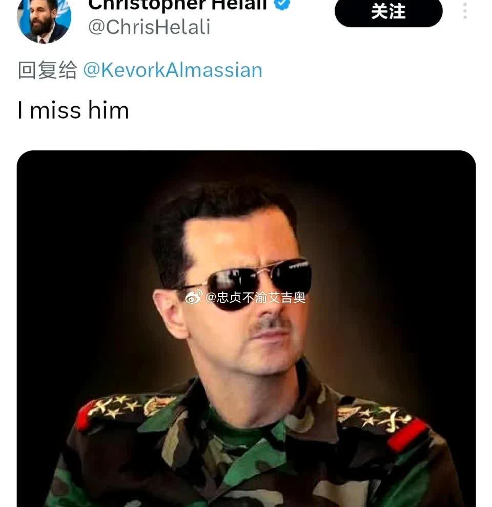 叙利亚人发文“我怀念阿萨德!” 一名叙利亚长老说: 不是阿萨德政权太严厉,是因为阿萨德政权太温和了。 现在的朱拉尼政府比垃圾还垃圾,根本没有任何底线。 另一名叙利亚政客则直接发文: “我怀念他(阿萨德)。” 并放上了阿萨德的照片。 这就是从阿勒颇到苏伟达,从阿萨德到朱拉尼故事的结局……