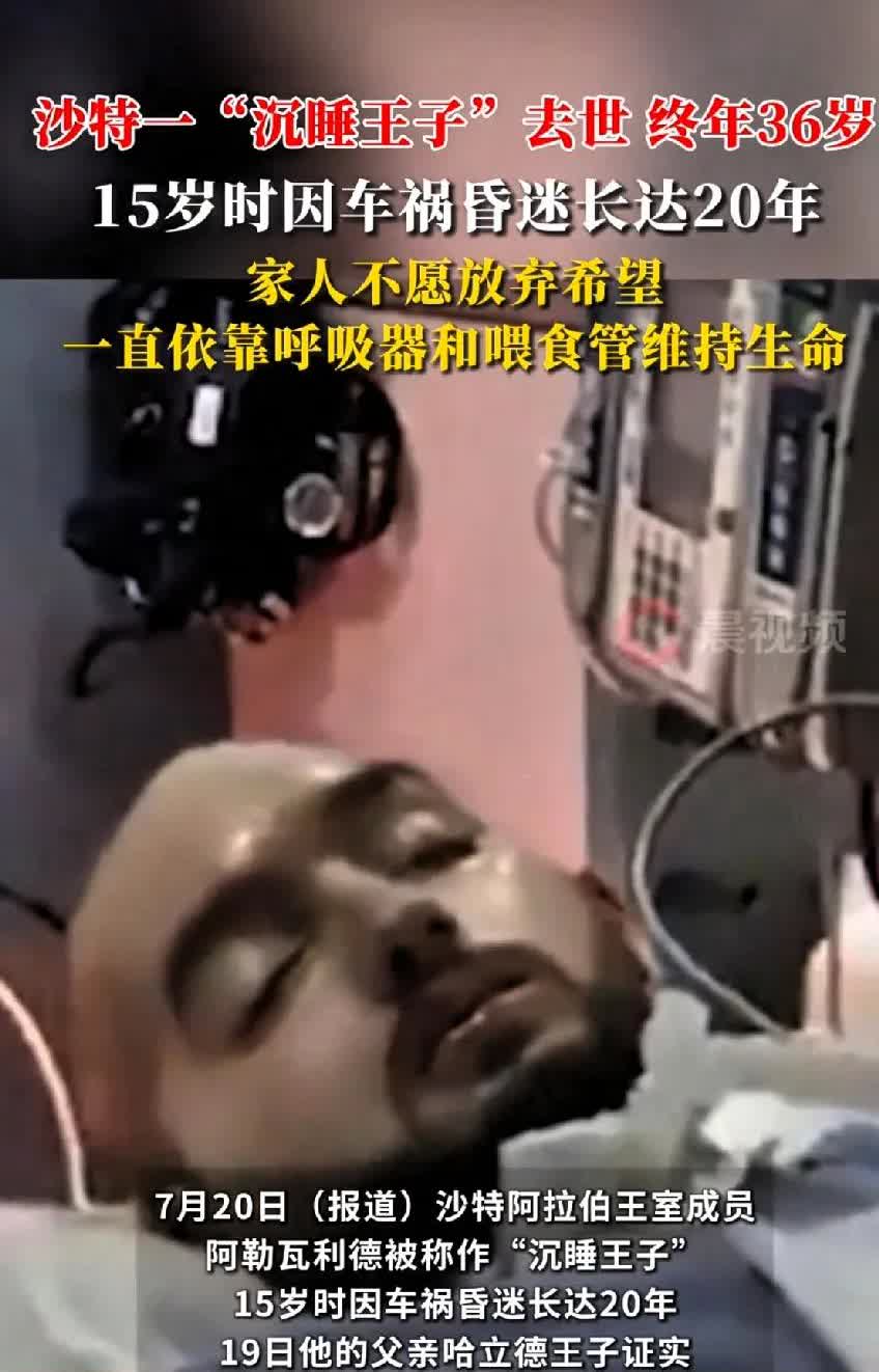 沙特“沉睡王子”昏迷20年后去世终年36岁,好可惜 15岁时遭遇车祸昏迷了20年 36岁的年纪最终也没醒过来, 阿勒瓦利德·本·哈立德的故事太让人唏嘘。他出生于1990年,是沙特王子哈立德·本·塔拉勒的长子。2005年,15岁的他在伦敦读军事学院时遭遇严重车祸,脑部重创陷入昏迷。 事故后他被送回沙特治疗,却一直没恢复意识。这20年间,他偶尔有无意识动作,家人始终没放弃,靠呼吸器和喂食管维持他的生命。当地时间7月19日,36岁的他还是离开了人世。20日他举行了葬礼,20日至22日在府邸和宫殿有为期3天的吊唁。生命无常,王子也躲不过命运捉弄。