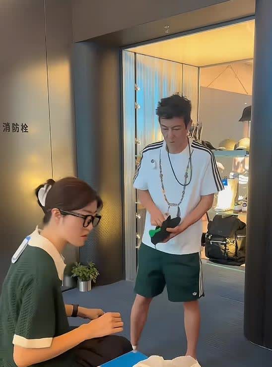 陈冠希到上海出席活动,在阿迪达斯旗舰店举动引热议。 有网友拍到一名女顾客买鞋,陈冠希化身店员,拿鞋给女顾客,还蹲在地上帮女顾客穿鞋,就跟正常鞋店的店员一样。 要是去买鞋的都有他服务,那阿迪达斯的门店一天24小时不关门都不会缺顾客。