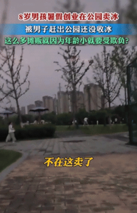 安徽的8岁男孩就遇到了这样的事,暑假里,他跟父母商量后,想用自己攒的零花钱“创业”,便进了些冰棍到公园售卖,他选了个热闹的角落摆好摊,可没一会儿,一个戴红袖章的男子走了过来,语气生硬地让他离开。
