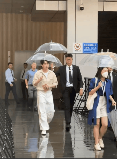 王楚钦现身深圳参加线下活动,打着雨伞,很有氛围感。 楚钦老师一身浅色系穿搭,清新又干净,好帅气! 好喜欢他这样的穿搭风格,很休闲,很舒适。 几位大高个的安保人员走在旁边,把大头显得好小一只。[偷笑] 深圳虽然下着雨,但是空气是甜的,那里的粉丝又幸福了![小鼓掌][小鼓掌]
