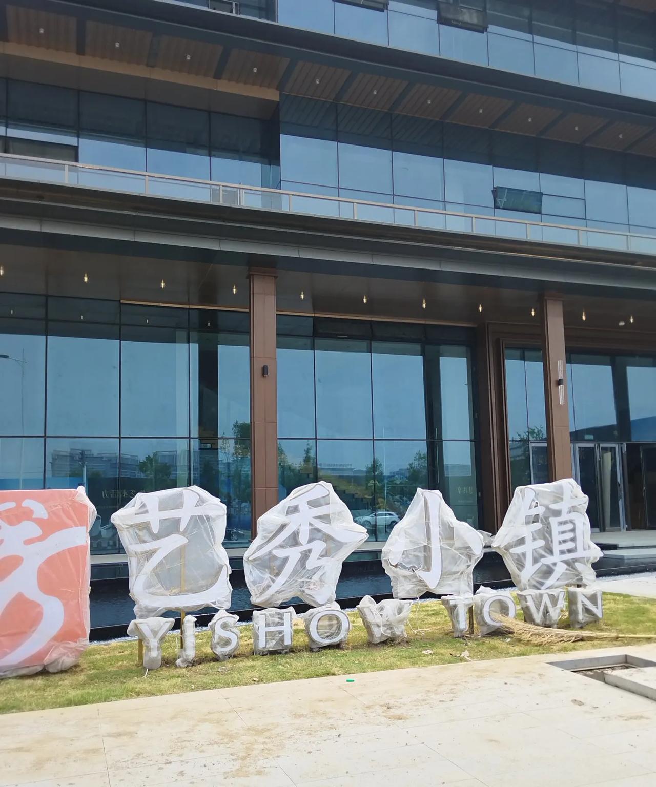 郑州中牟新区艺秀小镇终于露出了芳容。7月21日(昨天)下午,亲到现场,近距离看到了它,并拍了几张图片。 一期只有一栋楼房,内外装修基本完工,近期便可开业招商迎宾。 它的具体位置是绿博片区,广成路与博通路交叉口东南角,大门朝北,面向博通路。