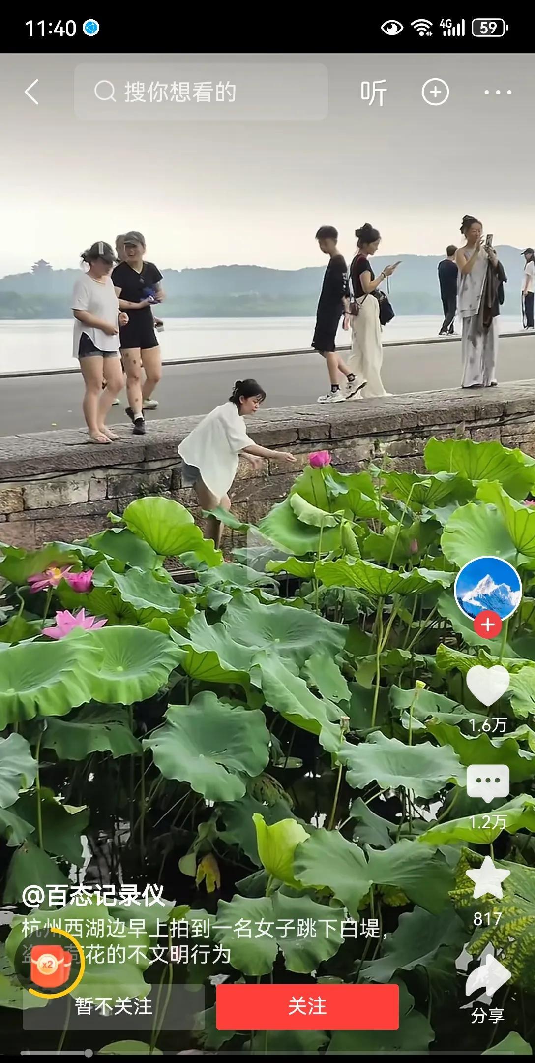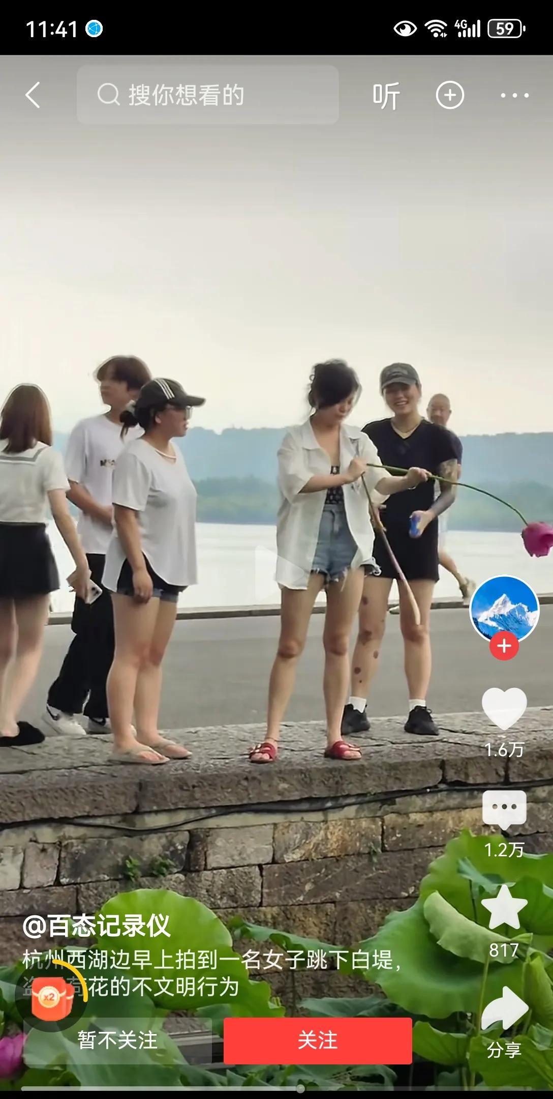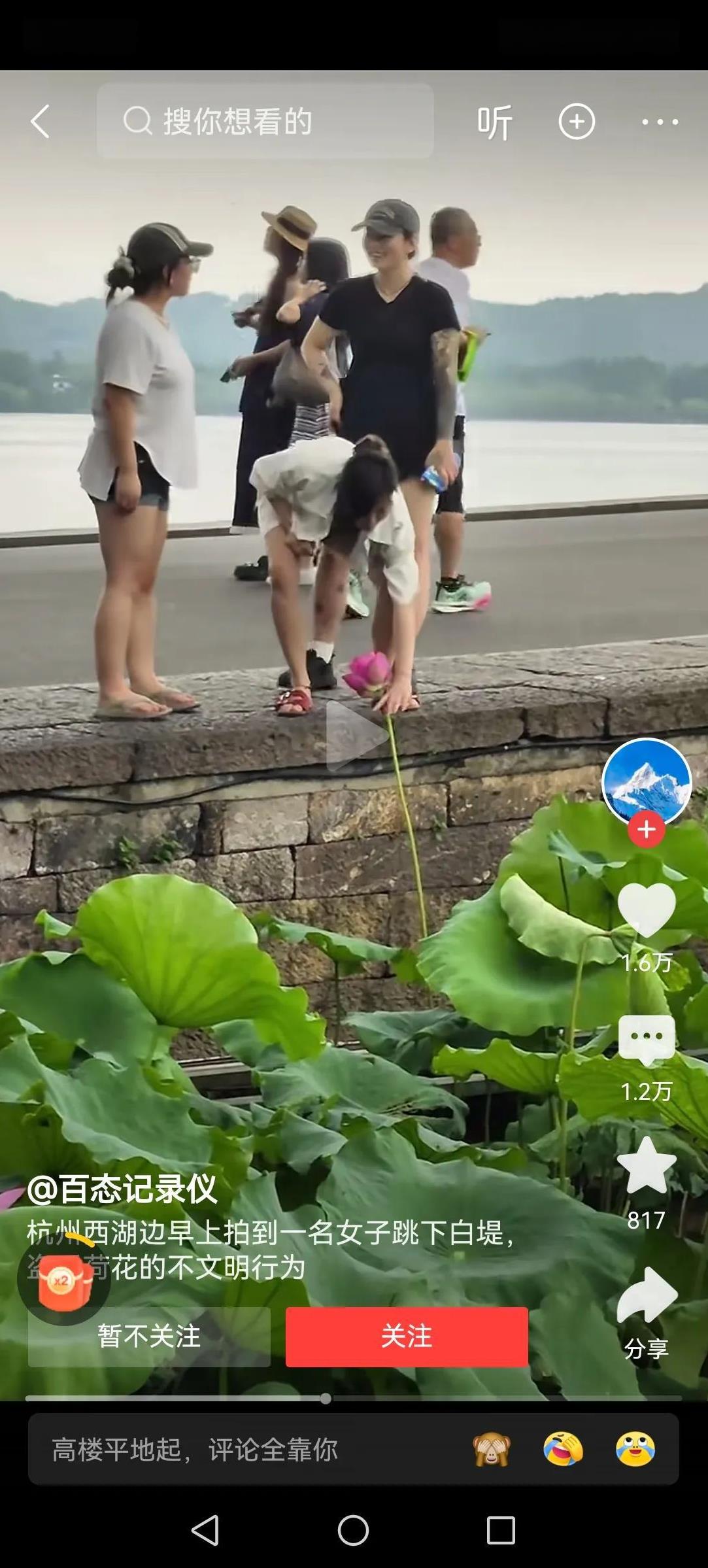 “丑人多作怪”,古人诚不欺我[泪奔][不看]。 西湖的荷花,是出淤泥而不染。然而,这朵荷花开出来以后,被这么一阵折腾,算是又插回到一摊淤泥上了[捂脸]。