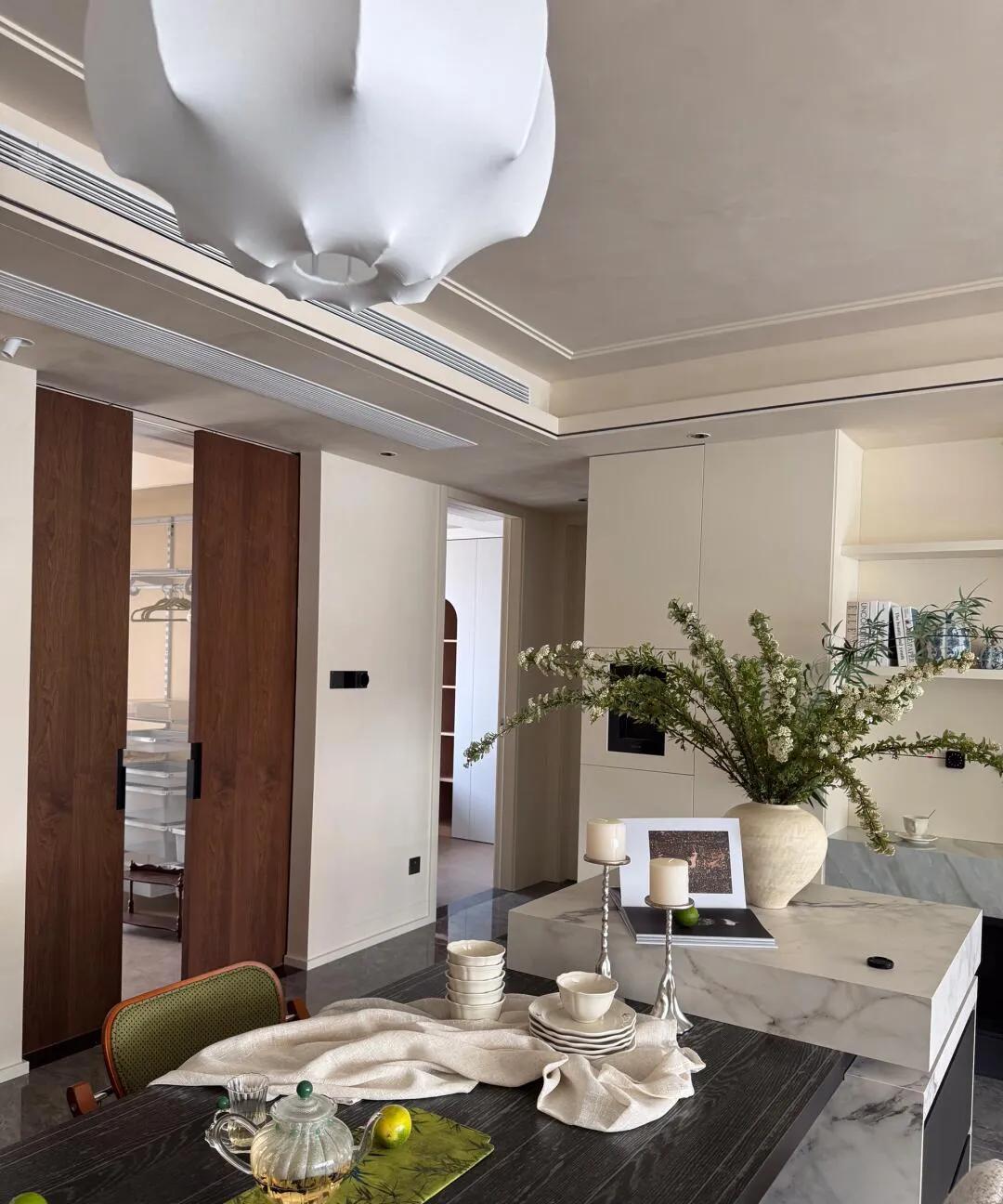 最近看到一位屋主的精装房改造,真心佩服!人家压根没大拆大改,就在原基础上动了点“小心思”,效果直接拉满,高级感堪比杂志封面。 [微风]重点来了,屋主家还有俩活泼小子,对储物要求超高。结果呢?地面瓷砖没动,铺上大地毯搞定;墙面刷了质感艺术漆,柜门颜色跟着墙走,整体和谐统一。客厅餐厅打通,大落地窗敞亮极了,长桌连着岛台,女主人插花、摆盘随心所欲。最妙的是衣帽间,不用笨重柜门,布帘子一拉,里面金属架子搞定,轻盈又能装!儿童房更是量身定制错层双层床,空间利用绝了。 [微风]看完就一个感觉:太清醒了! 谁说精装房非得拆成毛坯才叫装修?[what] [微风]这案例啪啪打脸!人家把钱和精力花在刀刃上,用软装和局部改造四两拨千斤,既省了大动干戈的麻烦和预算,效果一点不打折。更难得的是,屋主太懂自己想要什么了! [微风]不盲从流行,而是深度参与,让家一点点长成自己喜欢的样子。特别是那个储物设计,有娃的家庭都懂,东西多到爆炸!人家把空间榨干用尽,还方便收拾,这才是真正“过日子”的智慧。 [微风]这种不花冤枉钱、不堆砌、只为实用和美感服务的改造,才是真高级!狠狠羡慕了,智商税少交多少! [微风]所以说啊,家不在于砸多少钱拆多少墙,而在于那份用心和巧思。精装房也能“逆天改命”,关键是你有没有这份“不将就”的审美和“懂生活”的智慧!你们家精装房是拆了重来,还是像这样巧妙改造的?评论区聊聊你的选择吧!