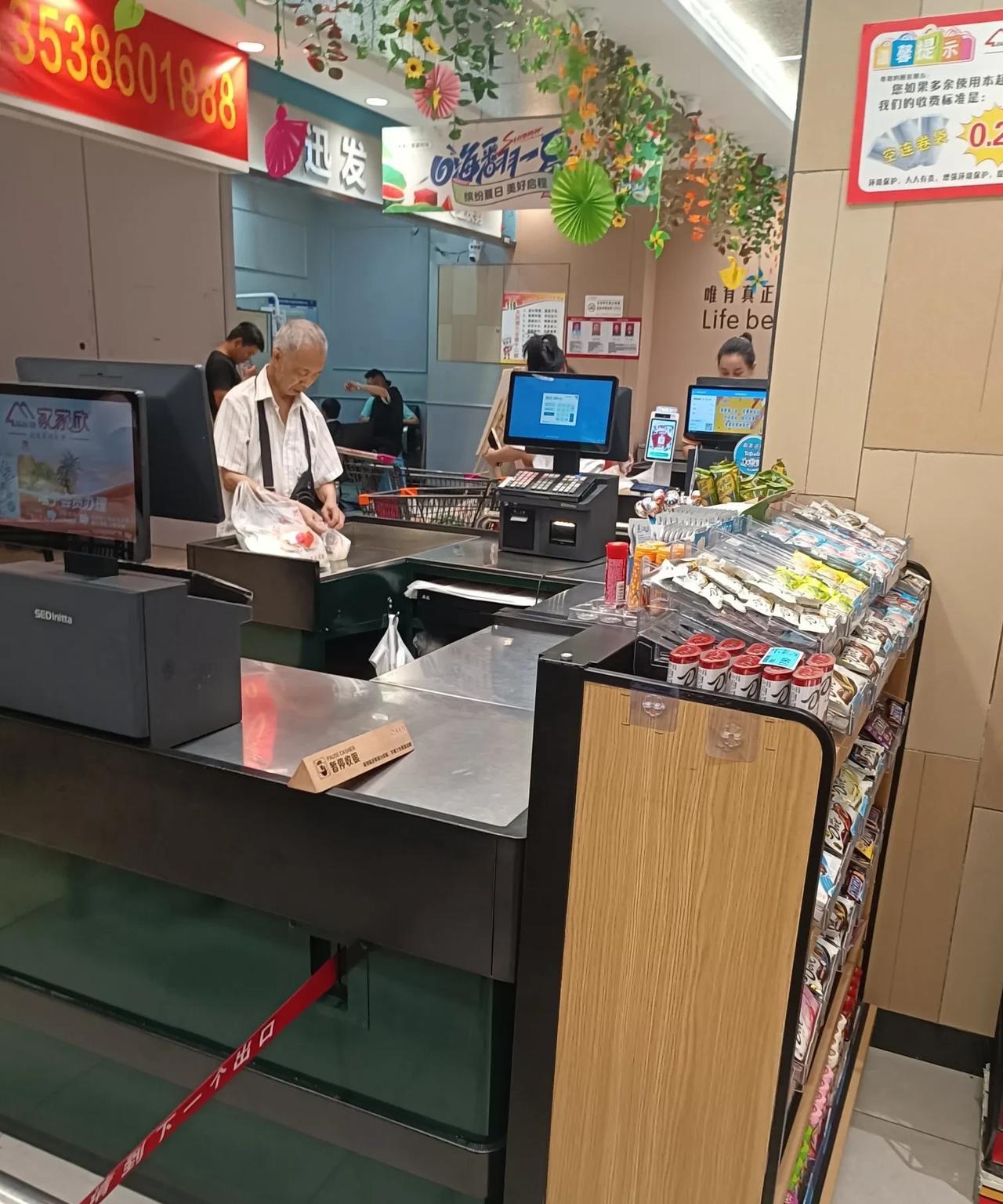 我殷切希望, 我家小区外的家家欣超市越来越红火! 千万别又关门了, 因为它一关门, 我们这种老胳膊老腿的家伙要买个菜, 就得去老远的地方。 而且,一个地方不止一家超市, 菜价也会合理太多。 我的担心不无理由, 因为我上午正点时间去买菜, 发现收银台前没有人排队, 超市内顾客稀少。 更因为,这里先前开过永辉超市, 后来永辉撤走了, 家家欣才入驻的。