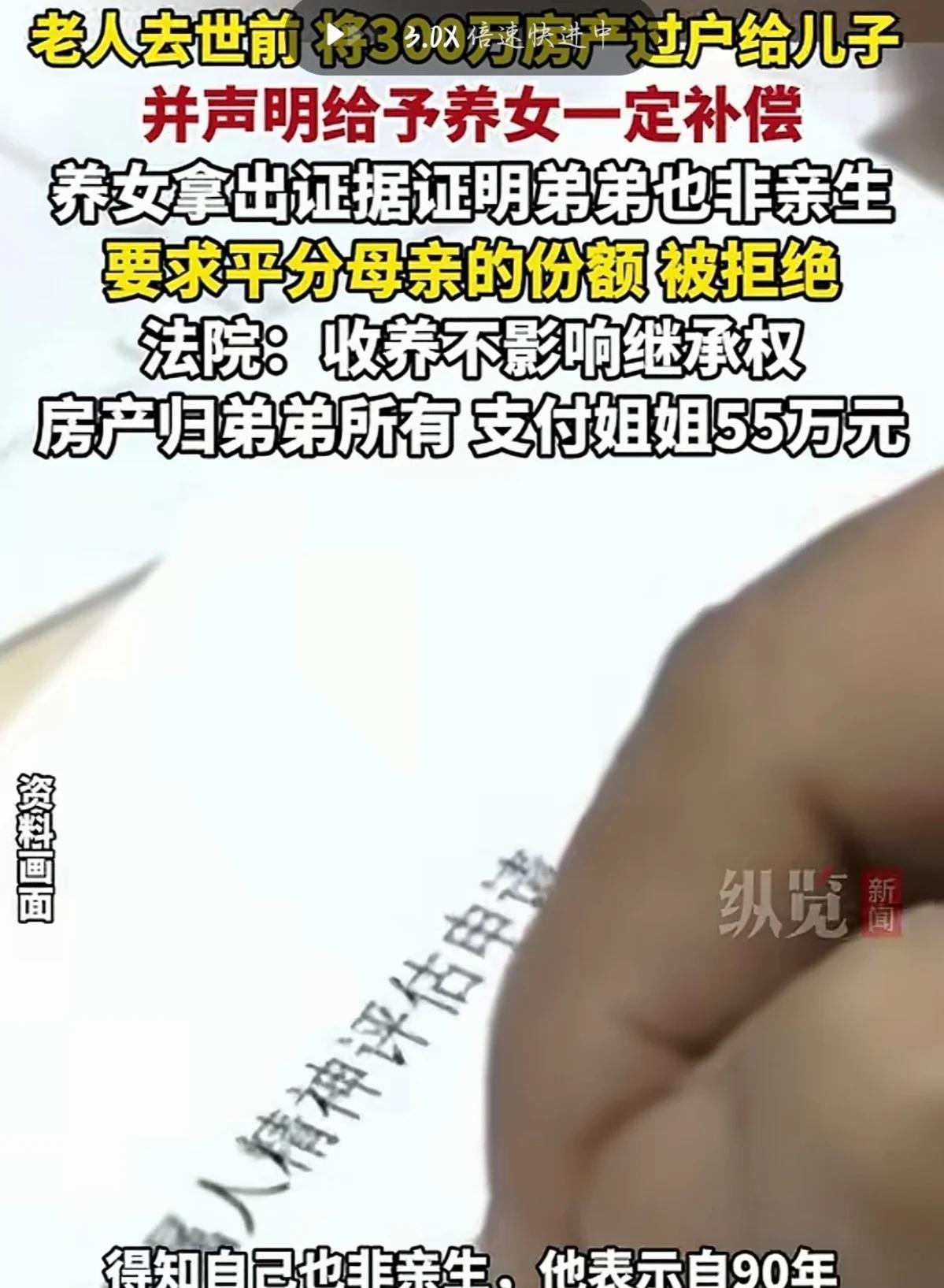 天津,老人去世前,将300万房产过户给儿子,并声明给予养女一定的补偿。养女拿出证据证明弟弟也非亲生,要求平分母亲的份额被拒绝。 据纵览新闻7月21日报道,天津的孙大爷在去世前,将自己名下价值300万的房产过户给了儿子,并留下声明给予养女一定的补偿。 2025年3月老人离世后,姐弟俩却为了300万元房产和银行存款闹上了法庭。 弟弟表示,他早已与父亲签订了赠与合同,并在临终前也完成了房产过户。 况且自90年因房生隙后,姐姐就不再与家里往来,父母均由自己养老送终,因此他拒绝了姐姐提出的分割房产想法。 而姐姐则要求,除了银行存款还要分割房产,因为赠予合同只有父亲一个人签字,那么母亲的额分应当作为遗产处理。 孙大爷留下的声明中称,女儿是收养的但一直视为己出,后来因为一些原因隔阂了近三十年,晚年靠儿子照顾,所以房子留给儿子,但他要给姐姐补偿。 就在大家都争论不休时,一份户口簿复印件标明,弟弟也是收养的。 在家庭情况调查时,一份公安机关出具的户口簿复印件标明了弟弟其实也并非是亲生的,得知这一消息,弟弟称这绝对不可能。 审理认定,因法律明确规定,收养不影响继承权,但这套房子已经完成赠与过户,依法不属于遗产范围。 最终,经调解,双方达成一致,房产归弟弟所有,弟弟支付姐姐55万元补偿款。丧葬费、抚恤金扣除实际支出后均分,双方均表示同意。 一、那么在此案例中包含了哪些房产过户的规定呢? 根据《民法典》第二百零九条规定,不动产物权的设立、变更、转让和消灭,经依法登记,发生效力。老人将房产过户给儿子,若过户手续合法合规,完成了产权变更登记,房产所有权就已经转移给儿子,从法律层面不再属于老人的遗产范畴。 但倘若养女能证明过户行为存在欺诈、胁迫等可撤销情形,或老人过户时非真实意愿,根据相关法律规定,可申请撤销过户。 二、在此案例中存在哪些继承权及遗产分配的相关规定呢? 继承权的相关规定:根据《民法典》第一千一百二十七条规定,遗产按照下列顺序继承,第一顺序为配偶、子女、父母,其中子女包括婚生子女、非婚生子女、养子女和有扶养关系的继子女。 若弟弟是通过合法收养关系成为老人的养子,那么其与养女一样,享有与亲生子女同等的继承权。 遗产分配相关规定:《民法典》规定同一顺序继承人继承遗产的份额,一般应当均等。对被继承人尽了主要扶养义务或者与被继承人共同生活的继承人,分配遗产时,可以多分。有扶养能力和有扶养条件的继承人,不尽扶养义务的,分配遗产时,应当不分或者少分。 案例中若弟弟对老人尽了主要赡养义务,可适当多分遗产;若养女能证明弟弟未履行赡养义务,可要求少分或不分给弟弟。 对此大家有什么看法呢?#头号创作者激励计划##分享城市新鲜事#