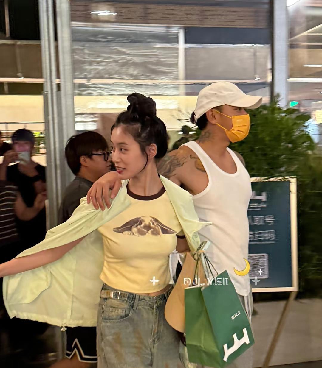 黄子韬和老婆徐艺洋在北京三里屯逛街,他的身材练得好壮硕,纹了大花臂,看着像混社会