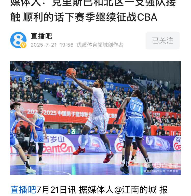 重磅消息! 由于山东男篮没有上报大外援克里斯的优先续约申请,辽宁男篮有意签约克