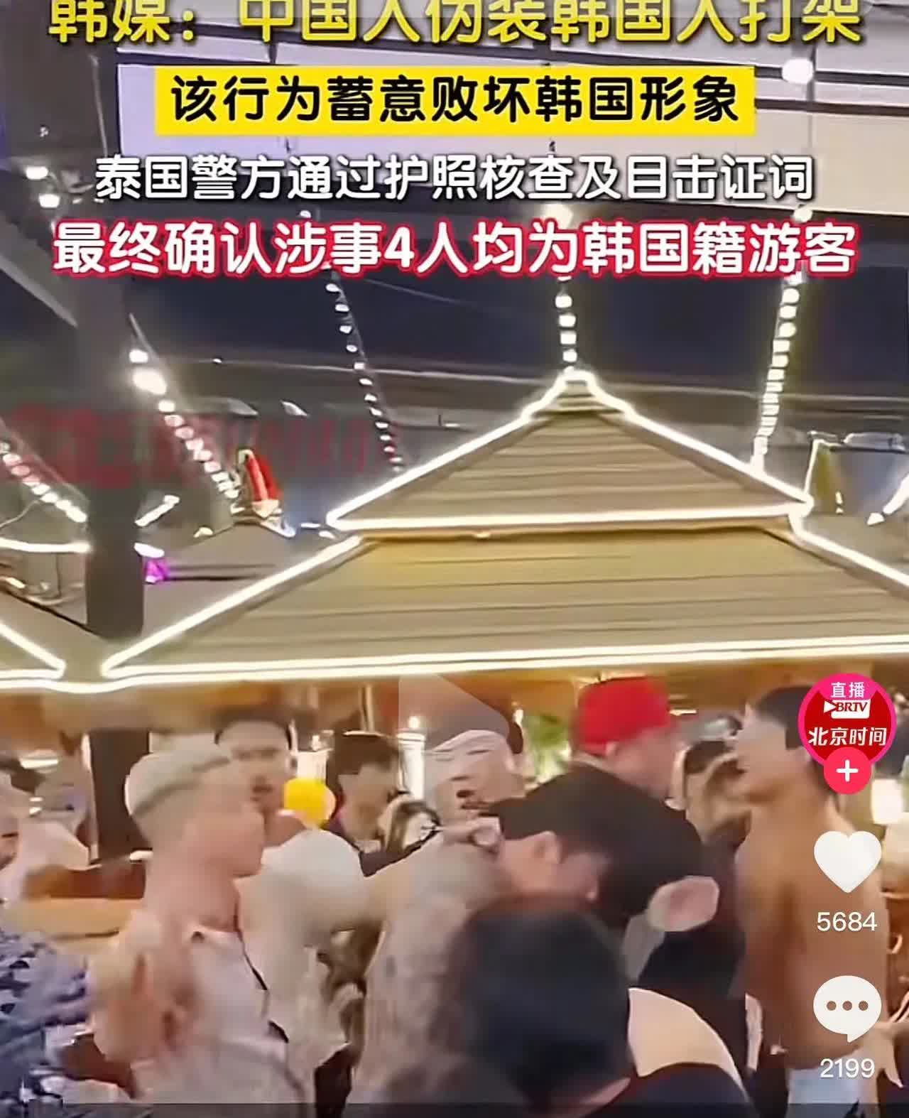 韩国人:我们是中国人! 泰国人:放屁!是中国人早赢了! 近日,泰国芭提雅一家餐厅内,十名游客聚餐时爆发口角。场面迅速失控,演变成多人赤膊上阵、满身纹身扭作一团的激烈互殴,餐厅其他食客吓得四散逃离。 一片混乱中,竟然有人用蹩脚的中文高喊“我是中国人”。泰国自媒体报道为“中韩游客起冲突”。 这一下,可让韩媒逮住了“发挥”的机会。它们立刻倒打一耙,声称“中国人伪装韩国人打架,故意败坏韩国名声”,试图将脏水泼向中国游客。 然而,前两天调查结果发布真相大白:参与斗殴的游客清一色全是韩国籍,压根没有一个中国人。 这已经不是第一次韩国人闯祸后试图把锅甩给咱们了。 去年底,几名韩国游客在越南胡志明市一家高档海鲜自助餐厅引发众怒。监控清晰拍下他们不仅超量取餐造成浪费,更偷偷将未吃完的生鲜,昂贵的牡丹虾、三文鱼、螃蟹腿等塞进塑料袋,试图带出餐厅。 被发现后,他们竟当场耍赖,用英语大喊“We are Chinese!” 还有一次在法国巴黎一家奢侈品店,几名亚洲面孔游客因争抢限量包发生激烈争执。混乱中有人用韩语叫骂,却也有韩语口音的“我是中国人”冒出。店员报警后,发现又是思密达。 这种行为真是卑劣又可笑,敢做不敢当。 真正的体面,从来靠的是行得正、做得端。 出事就甩锅的行为不仅仅是不负责任,而且更丢人的做法。在异国他乡,你的一言一行都自带“标签”。想用谎言转嫁责任给别人,是不会成功的。 现在到处都是摄像头,在确凿证据面前一切都会彻底暴露,反而让自己的形象更受损。 与其闯祸后拙劣地冒充他人、倒打一耙,不如守规矩、讲公德,这样别人才会尊敬你。