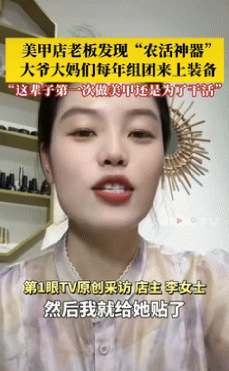 “人怎么能这么聪明!”河南开封,一大娘掐豆角时间长了,本甲不仅出现分层,磨损还特别严重,指甲疼的受不了,于是找到美甲店老板,询问她有什么办法,没想到,老板竟真的想出一个主意,大娘尝试一番后,觉得有效果,直接把村里种豆角的人,都推荐给了老板! 据第1眼新闻7月22日消息,农户们要是种一两亩地的豆角,产量就能达到几百斤,为挣钱,他们只能用手把豆角给摘下来,刚开始摘还好,但摘到后面,肉都是疼的。 大娘实在没办法了,决定问问美甲店主,人家是专门研究指甲的,说不定就有办法,结果店主听了大娘的遭遇后,让她伸出手,并问她摘豆角最常用的是哪根手指。 虽然大娘不知道店主要做什么,但还是如实说了出来,女子将甲片拿了出来,贴在她的本甲上,不需要做图案,再将长度打磨成大娘能接受的长度,随后就让她再去摘豆角试试。 没想到还真有效果,手一点都不疼了,如果单纯的用本甲摘,发炎还是小事,最怕的就是指甲脱落,大娘把她经历告诉给了同村人,旁人闻言也跑到女子店铺。 不管是大妈们还是大爷们,只要能方便干活,才不管那么多,许多老人都是第一次做指甲,可她们不是为了臭美,而是为了生活,不过他们再也不需要忍受疼痛了。 对于这件事情,大家有什么看法? 信息来源:第1眼新闻 2025年7月22日