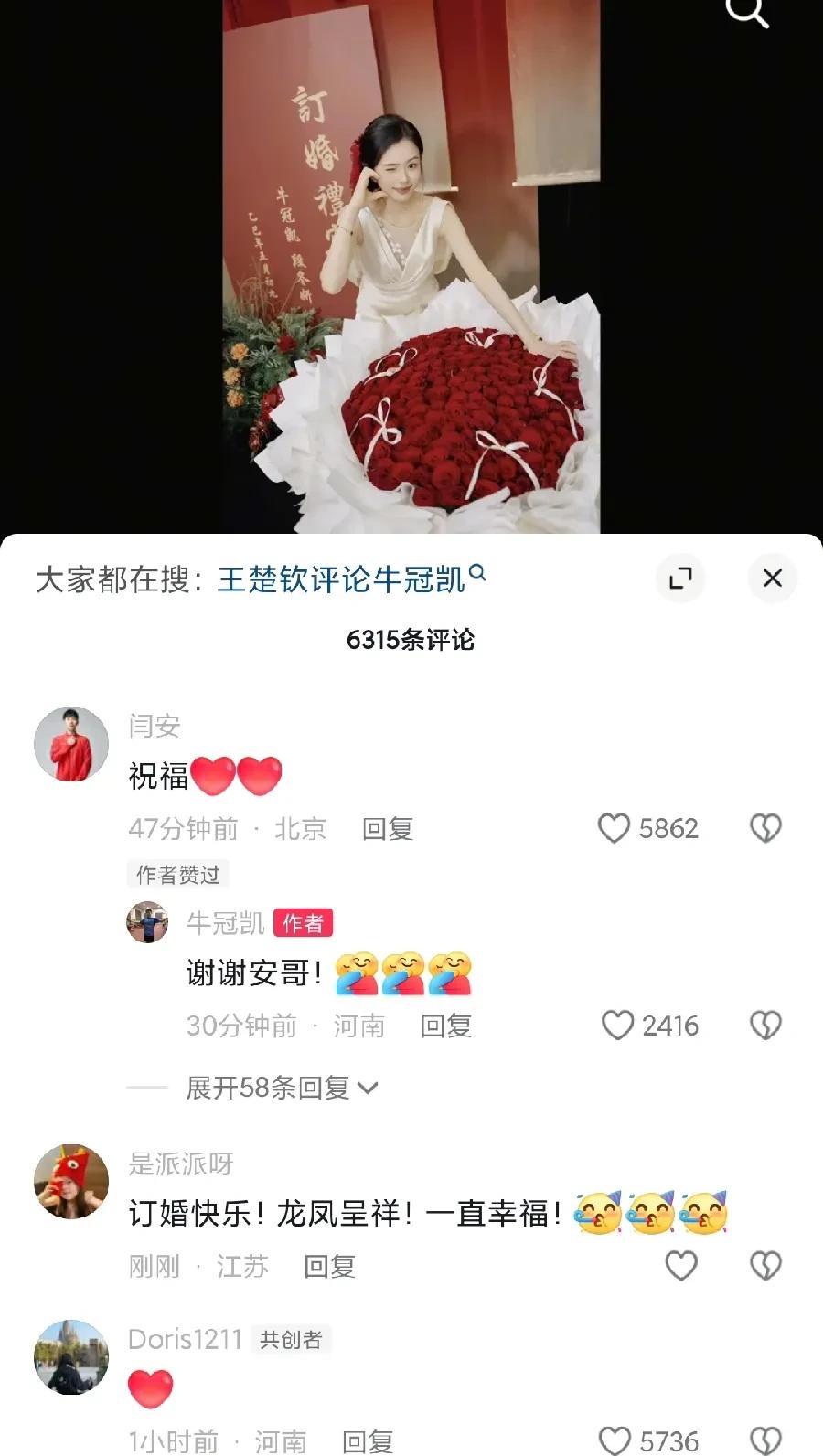 牛冠凯公布订婚视频, 闫安、王晨策纷纷送上了祝福, 不得不说, 牛妈是大头工作室