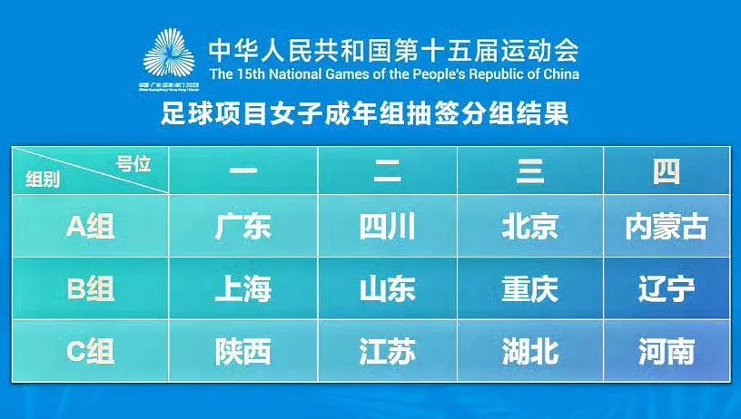 全运会女足12支队伍抽签分组,上海、山东、重庆、辽宁组成的B组被部分球迷认定为死