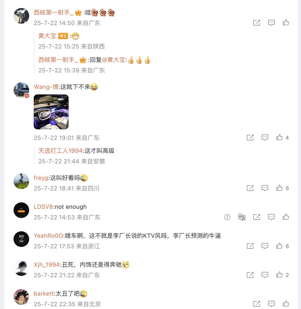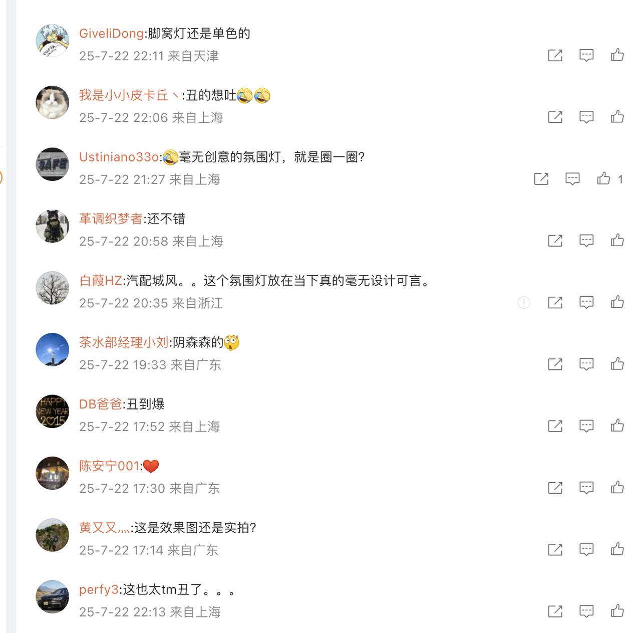 大家看看理想i8的这个氛围灯好看么 图来自摄影师黄大宝 最后两张图是网友的评论【