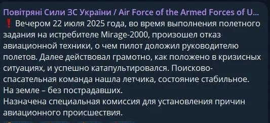 7月日22日,乌克兰空军司令部通报,一架法国幻影-2000战斗机在乌克兰西部的沃