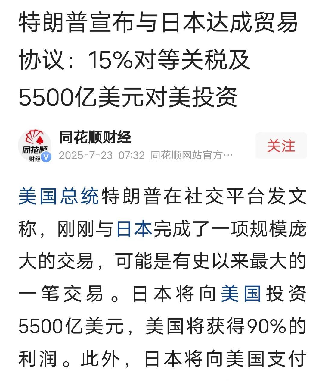 特朗普又率先宣布与日本达成重大关税协议,日本到底跪没跪?如果是真的,日本的对美5