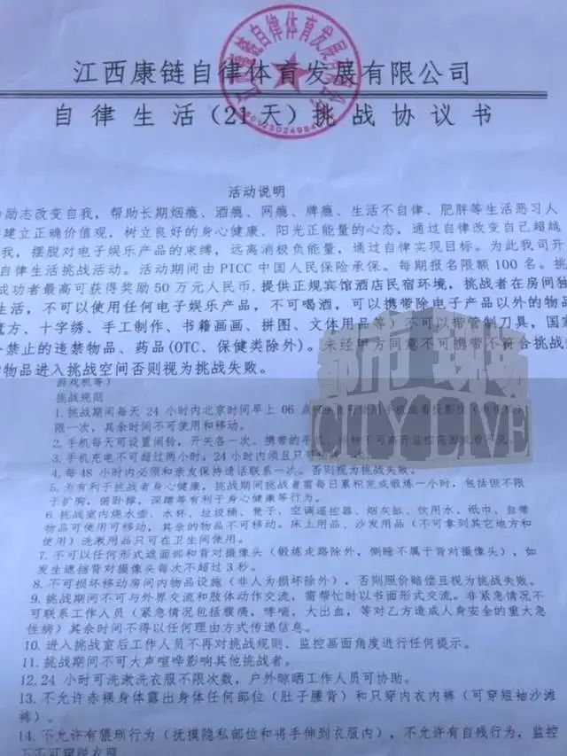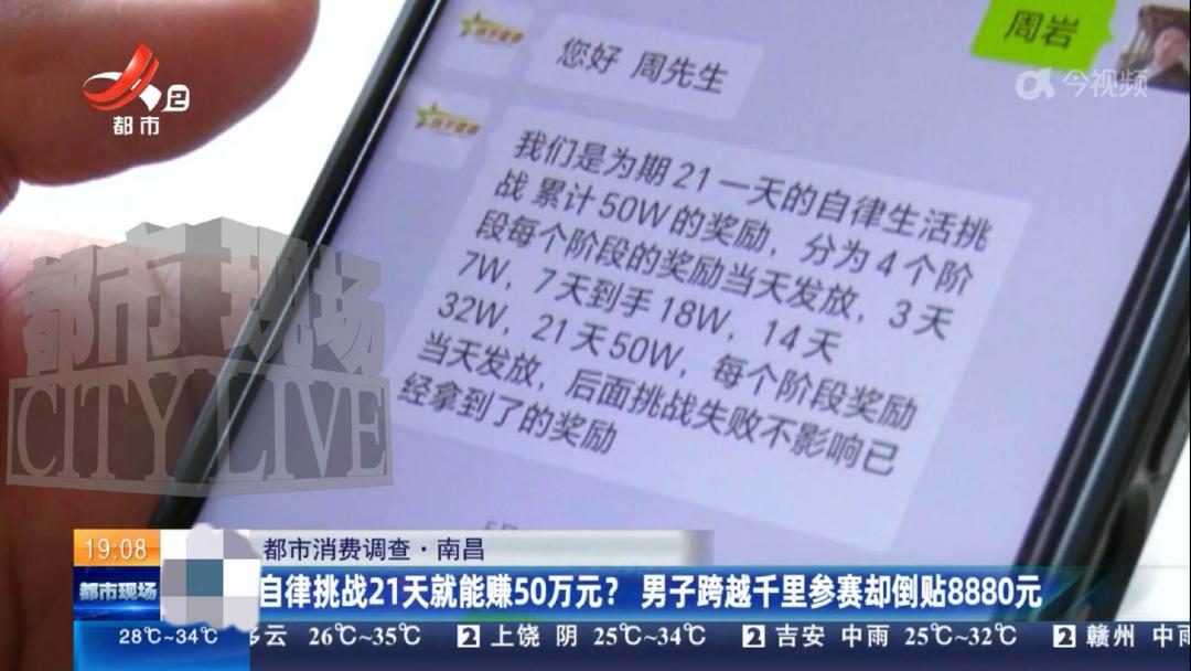 “想白嫖?”江西,男子交了8880元挑战21天自律任务,想要赢取50万大奖。结果第二天被告知,因为他的行李箱放在了监控下面,挑战失败,不仅奖金没到手,还倒贴了8880元! 一种号称能让人靠自律赢大钱的“自律挑战”在网上火了起来,打开短视频,经常能刷到“21天自律赢50万”、“独处30天拿60万”的广告。 不少人被这些天文数字的奖金吸引,山东的周先生就是其中一个。 可他怎么也没想到,千里迢迢跑到南昌参加挑战,结果却栽了个大跟头。 这种“自律挑战”在全国好多个城市都有,搞活动的公司大多是最近两年才成立的。 他们给挑战起了各种名字,除了自律挑战,还有寂寞挑战、隔离挑战之类的。 报名参加得交6000到8000块钱,挑战时间一般是20到30天,承诺的最高奖金能到30万到60万,中间还设置了阶段性奖励,比如挑战3天给几万,7天给十几万,听着特别诱人。 这些公司在网上宣传时都说自己正规合法,没有隐形规则,可实际上根本不是那么回事。 2025年7月初,周先生就是在网上刷到南昌这家公司的广告,说挑战21天成功给50万,阶段性成功也有奖励。 他觉得自己平时生活挺规律的,这些规则应该难不倒自己,最为关键的是,报名费虽然有点高,8000多元,但比起50万大奖,完全不值得一提。 俗话说,搏一搏单车变摩托。 于是,周先生就专门从山东坐火车赶到南昌。 到了之后,公司让他签了一份《自律生活21天挑战协议书》,交了8880块钱的“挑战食宿费”。 当时周先生一心想着拿大奖,觉得这几千块钱不算啥,爽快地交了钱,当天下午就住进了公司安排的民宿房间。 可谁知道,第二天中午,周先生就收到了挑战失败的通知。 他一下子懵了,自己明明按照规则做的,怎么就失败了? 找公司问原因,人家拿出协议第16条,说规定行李箱必须放到监控盲区,可他把行李箱放在了卫生间,那里有监控,所以违规了。 周先生觉得不对劲,他后来才发现,自己住的那个民宿里,当时就只有他一个人参加挑战,这跟公司说的“同期有好几人参赛”完全对不上。 不光是周先生,全国还有不少人遇到过类似的事。 去年,新疆的张林参加成都一家公司的挑战,才两天就被通知失败,原因竟然是衣服和裤子之间有点缝隙,被说“露背”了,违反了“不允许赤裸身体”的规定。 西安的张先生更惨,连着参加三次挑战都失败了,前前后后交了两万多块报名费。 贵阳的孙先生交了6000块参加30天挑战,才第三天,因为睡觉的时候用枕头挡了下脸,就被说遮挡监控,挑战失败了。 这些挑战的规则看着简单,实际上全是坑。 有的自律挑战协议里列了20多条规定,一条比一条苛刻。 比如不能遮挡面部,背对摄像头不能超过3秒,去卫生间单次不能超过15分钟,进去之前还得对着监控站10秒以上,手机每天只能定一次闹钟,还不能碰不能移动。 这些规则细得离谱,稍微不注意就会违规。 更气人的是,这些公司说一套做一套,周先生第一天入住时要是真违规了,为什么当天不通知,非要等第二天? 等人家交了钱、住进去了才说失败,这不明显是故意的吗? 这些公司在操作上也有很多说不通的地方。 周先生签合同的时候,公司说会宣读规则,可实际上根本没读,就说“合同给你看了,有问题自己问”。 当周先生质疑的时候,他们就拿“签合同时录了音录了像”当借口。 更离谱的是,这家公司营业执照上的注册地址和实际办公的地方都不一样,问起来就说正在办理变更,谁知道是不是真的在办。 遇到这种事,受害者想退钱可难了。 周先生找公司协商,人家就拿合同说事,说规则都写清楚了,是周先生自己不遵守,一分钱都不退。 还好有律师站出来说句公道话,这种合同根本不公平。 根据《民法典》,提供合同的一方不能不合理地加重对方责任,这种动不动就判失败还不退钱的规定,明显是无效的。 而且交几千块博几十万奖金,这跟赌博没两样,违背了公序良俗,法律根本不认可。 之前贵阳的孙先生就通过法院要回了一部分钱,法院说这种协议本身就有问题。 说到底,这些所谓的“自律挑战”根本不是为了鼓励大家自律,就是借着高额奖金的幌子骗报名费。 他们把规则定得那么细、那么严,就是为了让参与者轻易违规,好顺理成章地不退钱。 如果大家要是真的不小心掉进去了,也别慌,一定要把合同、交费记录、和公司的聊天记录都保存好,这些都是证据。 可以先找市场监管部门投诉,要是解决不了,就赶紧找律师起诉。 法律是站在受害者这边的,这种不公平的协议根本不受法律保护,当事人可以拿起法律武器把自己的钱要回来。 希望周先生的事能给大家提个醒,遇到这种高额奖励的活动,多留个心眼,别让贪心给骗子可乘之机。