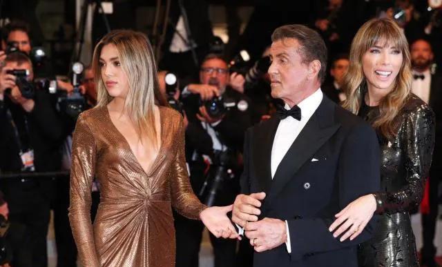 2019年第72届戛纳国际电影节上,史泰龙和妻子詹妮弗·弗拉文,以及已经开启演艺