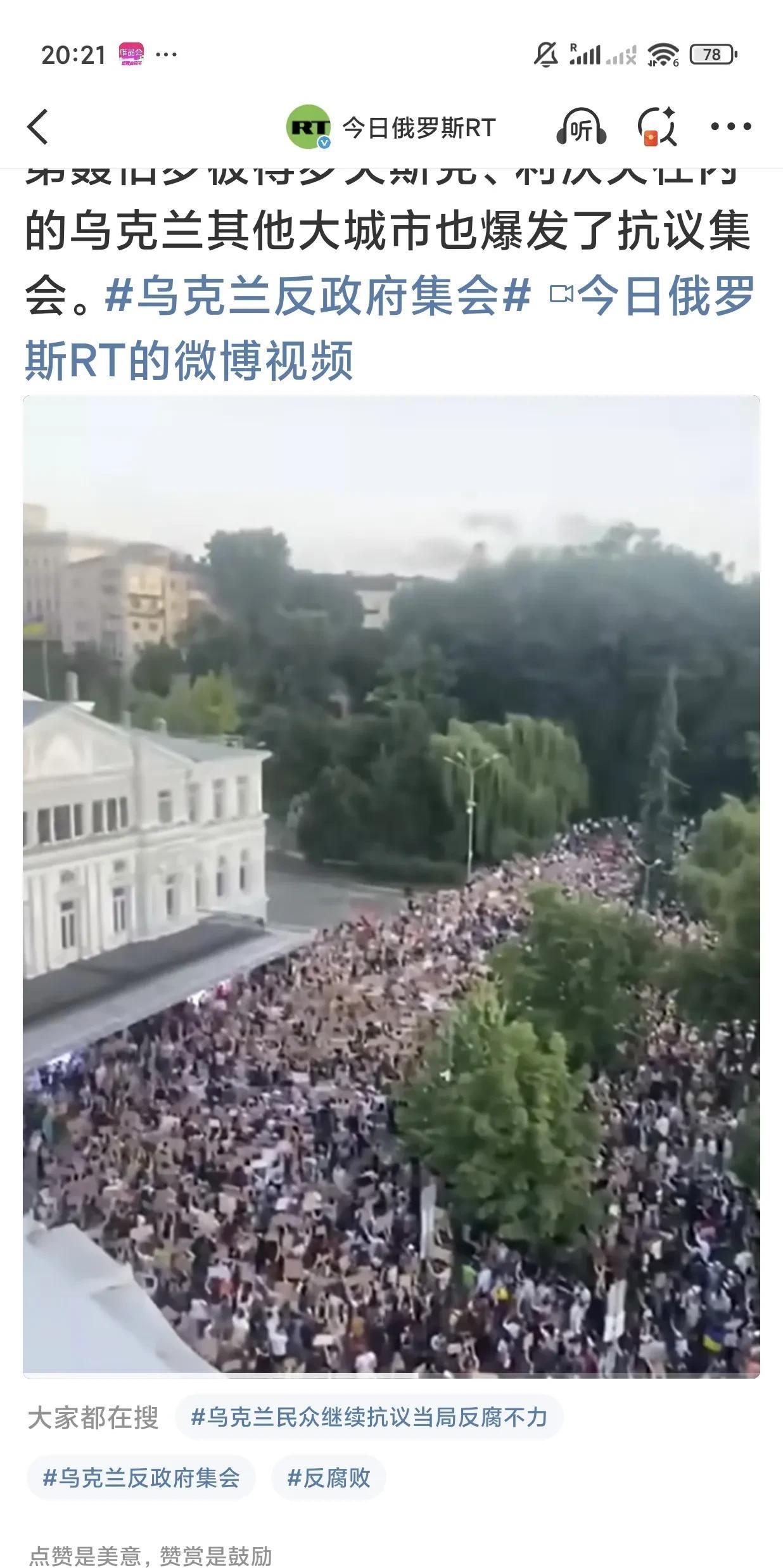 倒泽示威游行进入第二天,乌克兰抗议民众聚集在基辅市伊万·弗兰科剧院前的广场上,继续抗议乌当局对反腐败机构权力的限制。 与此同时,包括敖德萨、哈尔科夫、第聂伯罗彼得罗夫斯克、利沃夫在内的乌克兰其他大城市也爆发了抗议集会。 俄乌战争以来,美国和欧洲向乌克兰提供了巨额援助资金,为了确保这些资金用在战争上,美欧在乌克兰设立专管机构,也就是反腐败机构,但即使这样,也没能有效防止泽连斯基政权的腐败。 不仅援助资金没有完全用于战场,而且被当权者大量侵吞。这早已是公开就秘密,乌克兰也因此成为臭名昭著的最腐败国家。 这场示威游行,离不开西方国家的操纵,这是推翻泽连斯基的最好的选择。 昨天,反对泽连斯基削弱乌克兰反腐败机构权力的抗议活动中,出现了一些有趣的口号——抗议者者举着写有‘宁愿是‘ZOV’(俄军战术标志),也不要‘ZVO’(泽连斯基)的标语。