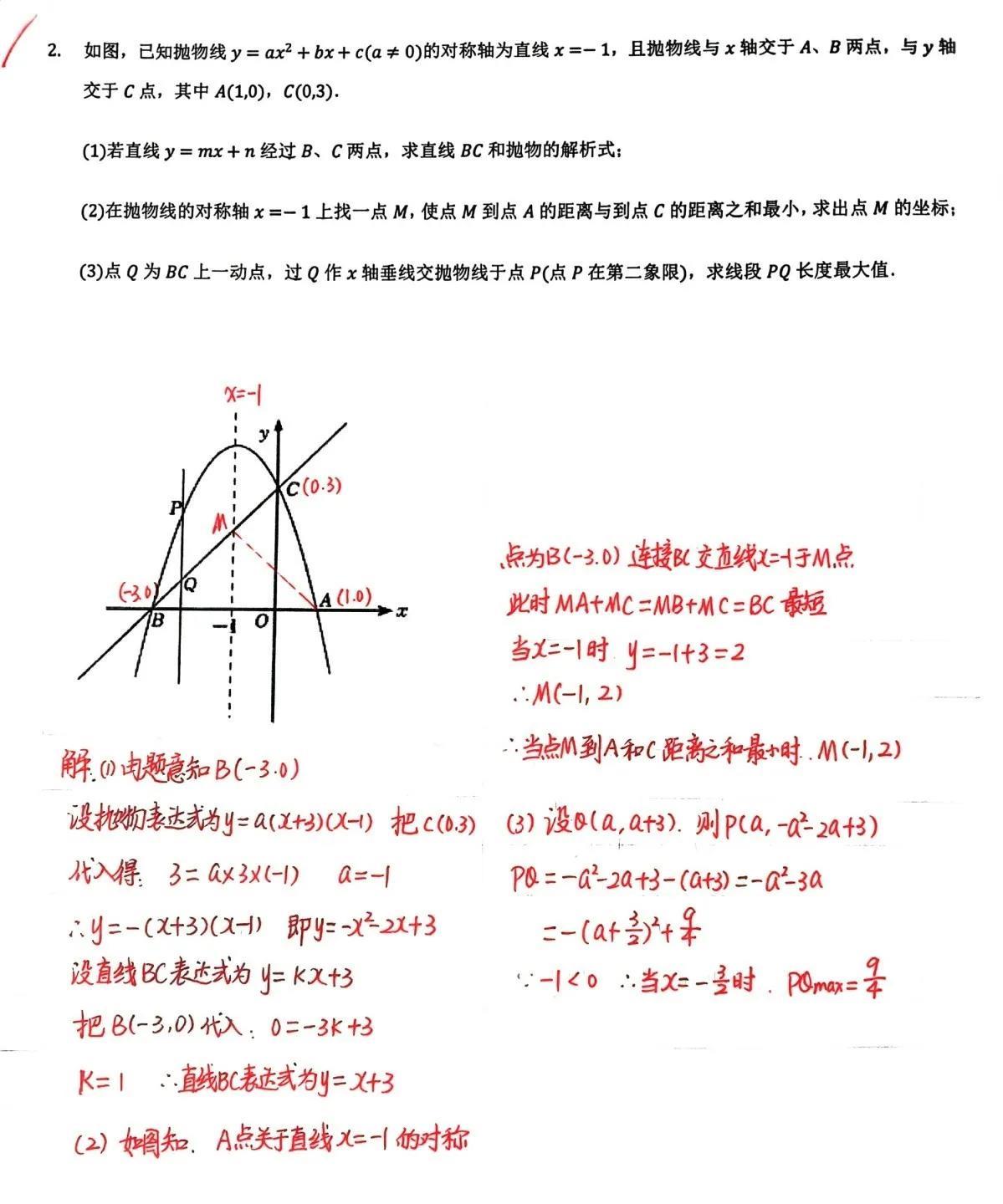 初三数学暑假精品复习资料,抛物线综合压轴题,涵盖了很多种类型,纯手写答案,拿走不