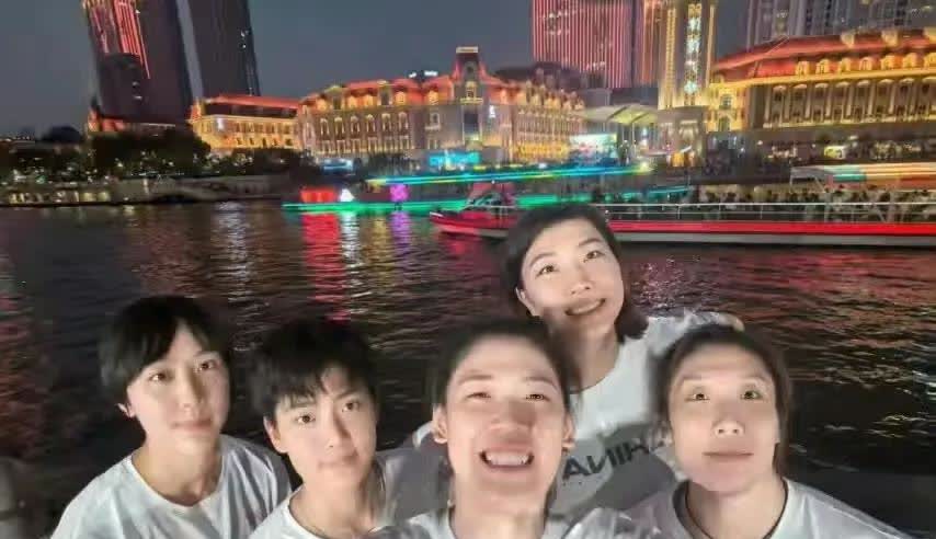 参加球队活动,时隔许久,李盈莹终与袁心玥同框! 化妆师宁宁40分钟前发的照片,看来天津女排正在津湾广场参加一个活动,化妆师分别为李盈莹等球员化妆,还和盈莹单独合影。从图片中看到袁心玥也在队中,看她笑得很开心。还看到杨艺、陈博雅等球员。