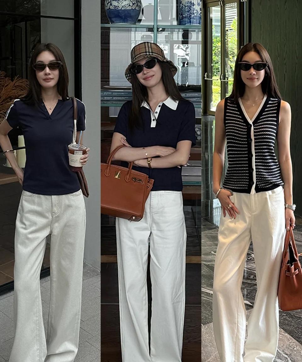 简简单单的穿搭也可以很出彩啊!日常出街比较喜欢这种低调耐看的look,黑色polo领上衣搭配白色阔腿裤,慵懒又气质。 经典的条纹衫,依然可以选择POLO领口的设 计,可以增加运动休闲的氛围,再搭配一条牛仔短裤就很街头随性。 通勤上班,还可以用一件棉麻材质的无袖马甲配短裤,干练又带着老钱风的松弛感,很高级。