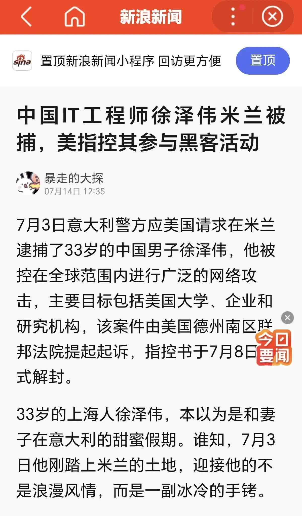 美国利用意大利扣留引渡中国高级IT专家,引起中国朝野愤怒! 中国同样以国家安全