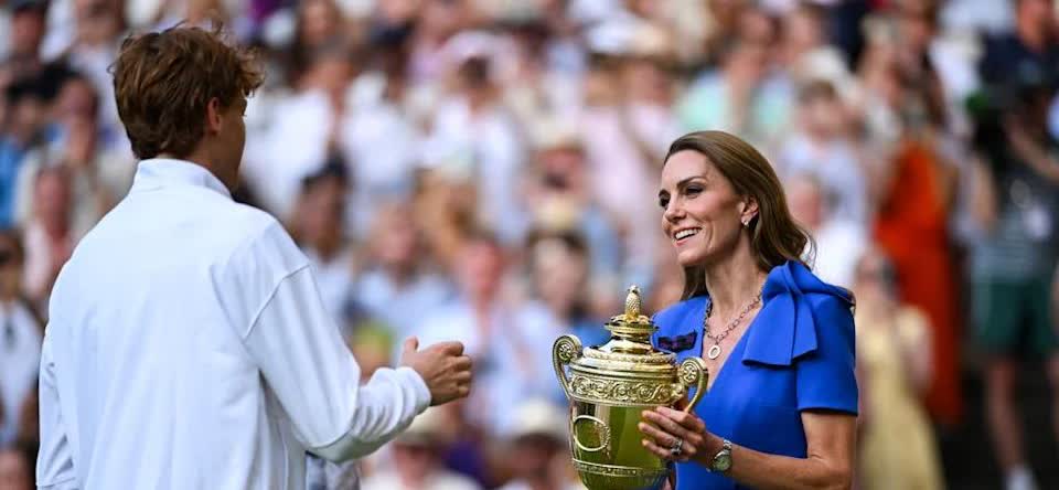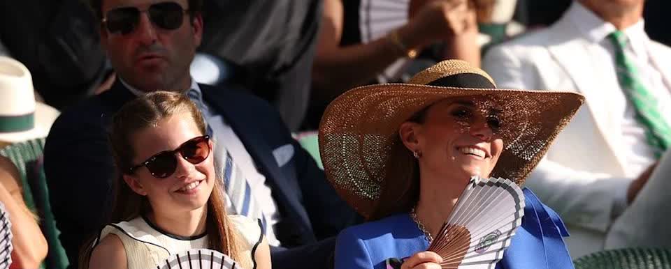 凯特王妃坐在温网包厢,身旁夏洛特一个小动作全网炸了。 这孩子看比赛正起劲,头都