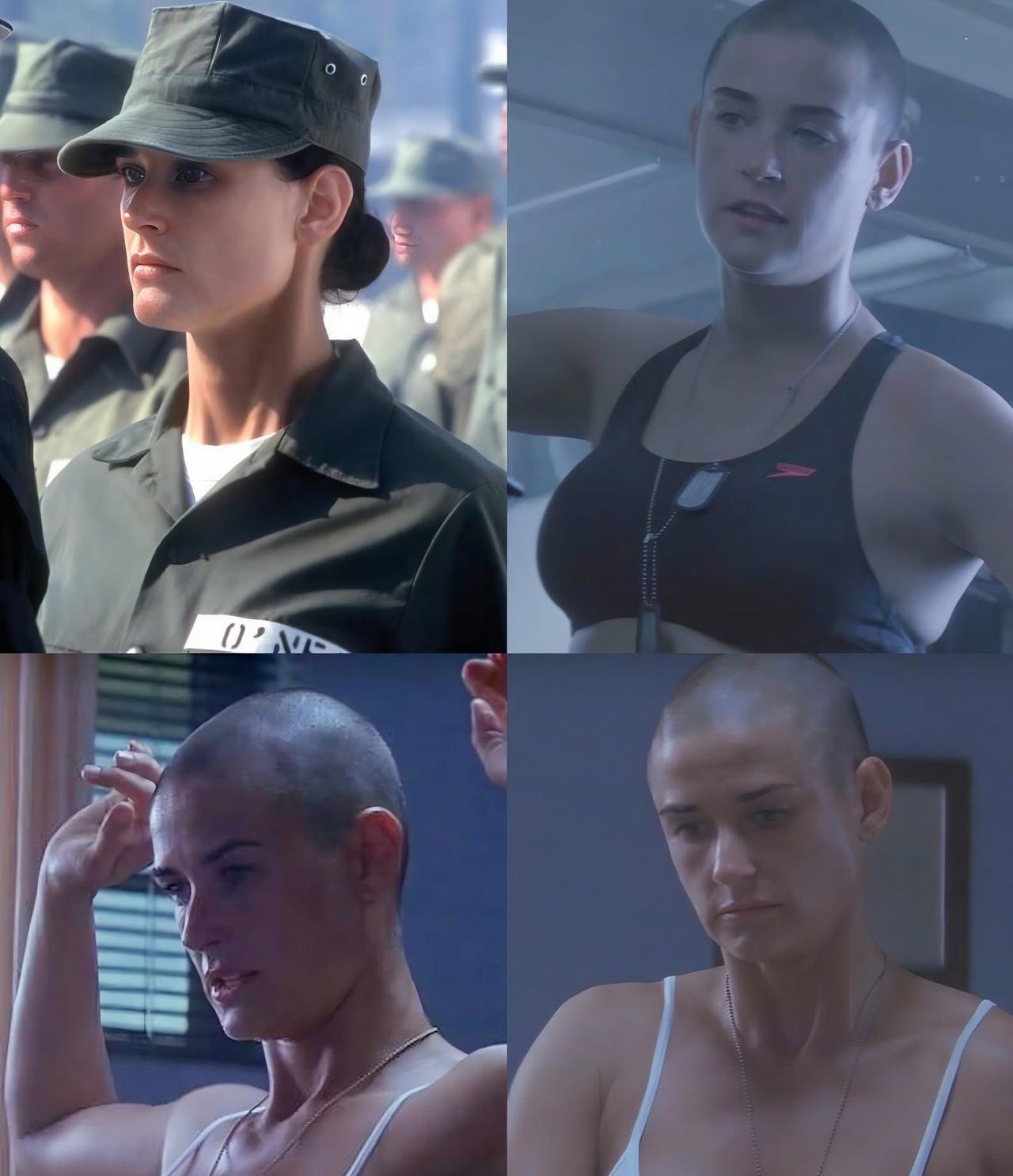 1997年,黛米·摩尔主演了动作片《魔鬼女大兵》,影片虚构了她所饰演的角色是第一个完成美国海军特种训练的女兵。 黛米·摩尔为了饰演这个角色做了相当多的准备工作,包括健身,她还在节目上做过单手俯卧撑,展现训练的成果,甚至还有剃光头,这对女演员来说是一个巨大的挑战。 影片以5000万美元的制作成本获得了9800万美元的票房,商业表现尚可,对于黛米·摩尔的投入,不少媒体也表示了肯定。后来在黛米·摩尔的自传里也提到说她认为出演《魔鬼女大兵》是她最骄傲的一次演出。 不过后来主持人克里斯·洛克在主持奥斯卡颁奖礼上时调侃威尔·史密斯的妻子贾达·萍克特·史密斯的光头造型是“魔鬼女大兵”,引得威尔·史密斯情绪失控,在全球直播的情况下上台掌掴洛克,使得威尔·史密斯被奥斯卡禁了十年,也留下了克里斯·洛克的名言,“电视史上最经典时刻”。