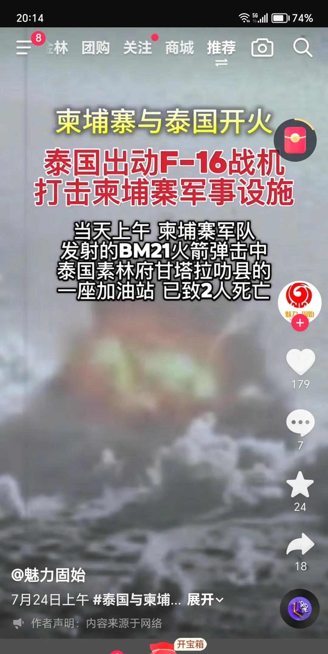 泰国和柬埔寨的冲突愈演愈烈,泰国出动F16打击柬埔寨的军事设施。柬埔寨用122m