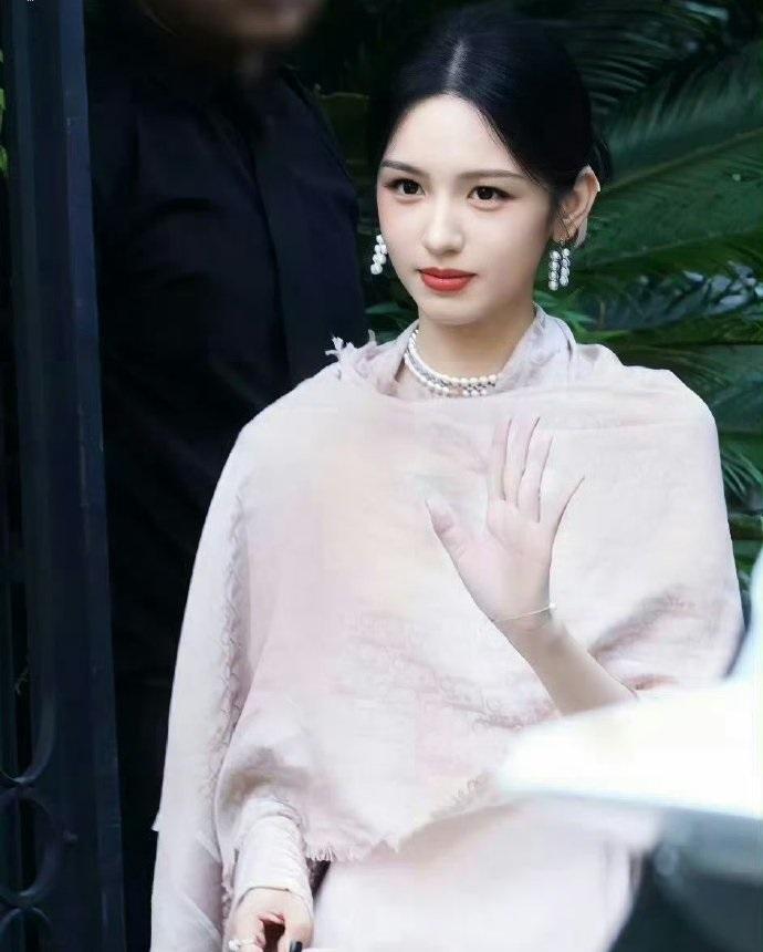 今天周也在出席时尚活动的时候搭配的非常靓丽,看起来像个时尚的仙女。 她穿了一件粉
