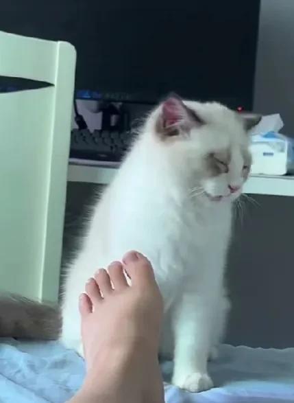 躺在床上玩手机,猫咪来到脚边,不知道它咋想的,竟然舔起了脚丫子。刚舔了没有两分钟,就闭上眼睛仰着头,不停的干呕。想来应该是被熏到了,这只傻猫 ,干啥不好,非要舔臭脚?