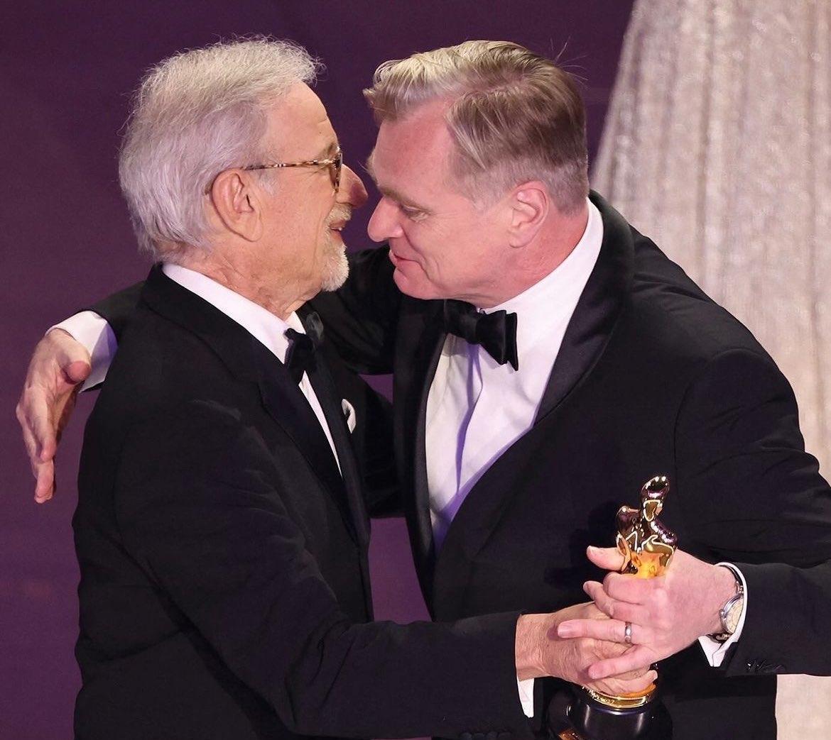 斯皮尔伯格说他最喜欢的诺兰的电影是《记忆碎片》和《盗梦空间》。 他认为诺兰是非线性叙事的高手,这两部电影就是这种非线性叙事的代表作。而他自己讲故事则更偏向于传统的线性叙事。不过他也说了讲故事没有规则,没有条条框框,只要能把故事讲好,怎么讲都行。