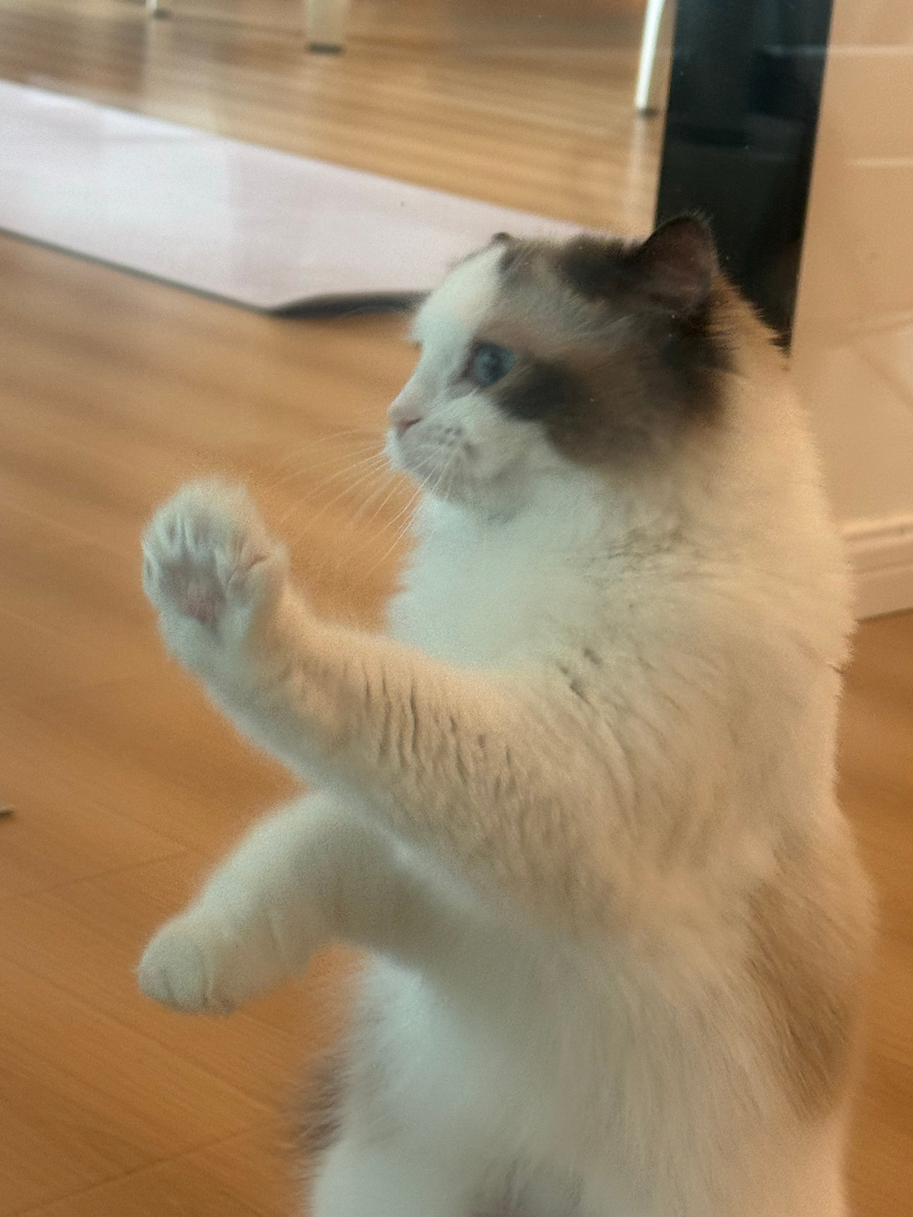 可爱的小宝宝们一直隔着玻璃踩🥛求摸摸[泪]