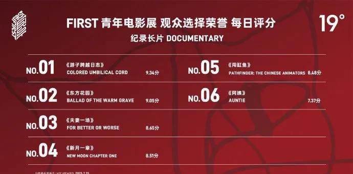 爆!第十九届FIRST青年电影展观众评分揭晓 截至7月24日,第十九届#FIRS