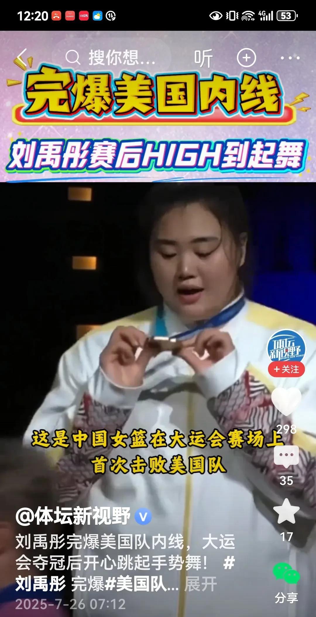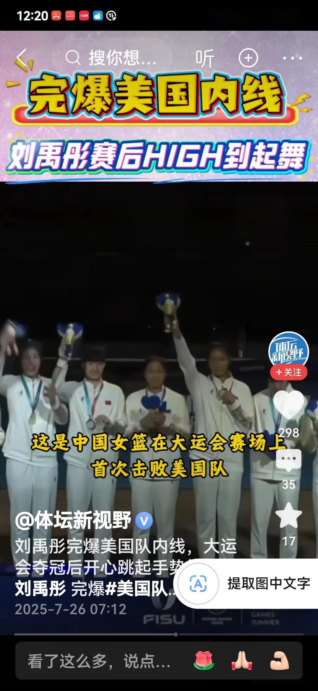 惊天逆转!中国女篮大运会卫冕夺冠 2025年德国莱茵 - 鲁尔大运会女篮决赛,中国女篮对阵强大美国队。开场美国队靠积极拼抢二次篮板和出色进攻先声夺人。但咱女篮没慌,唐子婷连续命中三分,上半场结束双方 42 平。 下半场,中国女篮火力全开,张梓涵和田媛媛发挥神勇,带队打出 12:0 攻势,确立领先。美国队虽奋力反击,却始终无法追平。最终,中国队 81 比 69 战胜对手,成功卫冕。 赛后,核心刘禹彤激动表示这是第二个大运会冠军,夸赞队友、团队和教练。主教练赵雪同也难掩自豪。中国女篮用汗水与努力带来精彩比赛,刘禹彤更是证明实力,狠狠打脸两任国家女篮主教练。期待她们未来更精彩,一起为女篮加油!