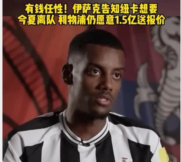 皇马挖墙角免签的多米诺骨牌效应来了,黑伊布伊萨克,要价1.5亿欧转会费,30万英镑周薪,利物浦也有点懵了,太贵了! 瑞典前锋已经向纽卡明确离开意向,除非满足30万英镑周薪的需求! 客观地说,以伊萨克目前在英超的出色表现,要30万英镑周薪,并不过分! 尤其是皇马开了免签+高签字费+高薪这个先河之后,这些巨星与球队之间的博弈将会越来越激烈! 无他,都在争取自己利益的最大化! 于是,俱乐部索要高额转会费,球员要求高薪续签! 于是,水涨船高! 不过,对于伊萨克来说,纽卡1.5亿欧的转会费要价真是虚高,真正的买家并不多,能拿出这个价钱的就更少了! 阿森纳在签下维克托·哲凯赖什后估计不会再报价; 巴萨想买却拿不出钱,干瞪眼! 利物浦刚刚买了埃基蒂克,还能买中锋? 切尔西买了佩德罗,还要卖雅克松呢! 实际上,欧洲豪门潜在买家可能只剩下了皇马! 不过,据说利雅得新月准备拿下这位瑞典前锋,不差钱!