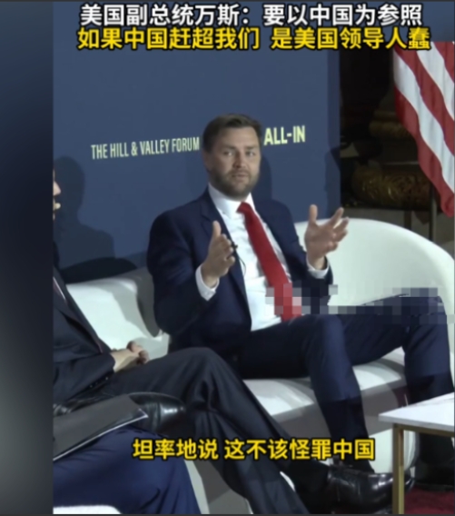 罕见!曾骂中国人为“乡巴佬”的美国副总统万斯,竟然公开称:“我们要以中国为参照,如果中国赶超我们,这不该怪中国,而是美国领导人蠢!”