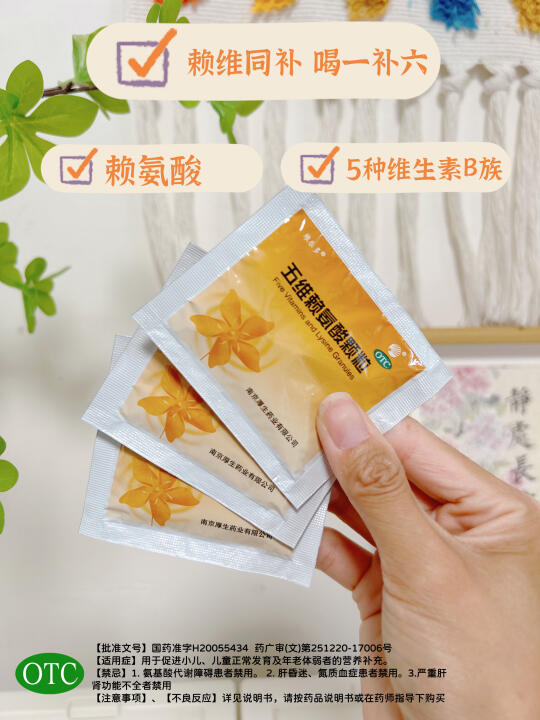 给孩子挑赖氨酸补充剂,以前也试过维乐多五维赖氨酸颗粒、巨可生赖氨酸锌颗粒、方盛赖氨酸B12颗粒,简单说说我们的实际感受,大家可以按需购入~ ⭐️维乐多五维赖氨酸颗粒 主要是赖氨酸+五种维生素(维生素A、B1、B2、C、D)喝一补六,像个“小复合营养包”,给身体精准补充营养。 口感:淡甜的口感,小孩喝起来容易接受,一小包就含有250mg赖氨酸 认证:OTC 绿标认证,宝妈给小孩补起来,不用过于操心 总结:孩子长身体阶段不能只补赖氨酸,平时蔬菜吃得少、身体里的维生素需求可能跟不上。添加上这个维乐多,多方面补充营养。 ⭐️巨可生赖氨酸锌颗粒 主要是赖氨酸+锌,这俩搭配挺实在,赖氨酸帮着成长,锌对不爱吃饭的孩子挺合适。 甜甜的橙子🍊味,冲出来颗粒化得快! 如果孩子平时吃饭就喜欢挑挑拣拣,想同时补赖氨酸和锌,选这个挺方便。 ⭐️方盛赖氨酸B12颗粒 主要是赖氨酸+维生素B12,B12帮着促进营养吸收,适合需要增强吸收的孩子。 冲泡有点像淡淡的奶味,颗粒细腻,冲的时候不容易结块,喝起来没负担。 如果孩子吃饭还行,但吸收不太好,选这款也不错。 其实这三款都是正规牌子,主要看孩子缺啥、喜欢啥口味。给孩子喝之前,根据孩子情况选更靠谱~