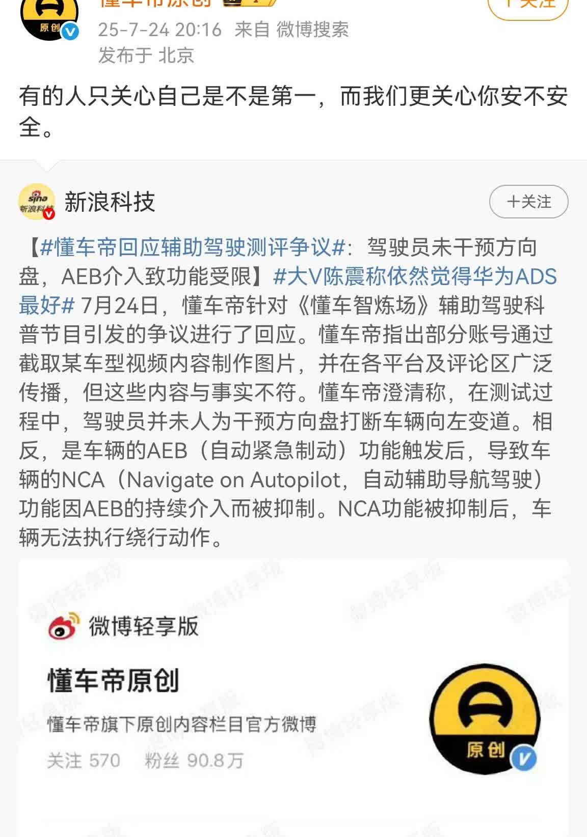 懂车帝硬刚鸿蒙智行! 懂车帝一场精心策划的车辆智驾测试,一下子搅动了整个汽车车