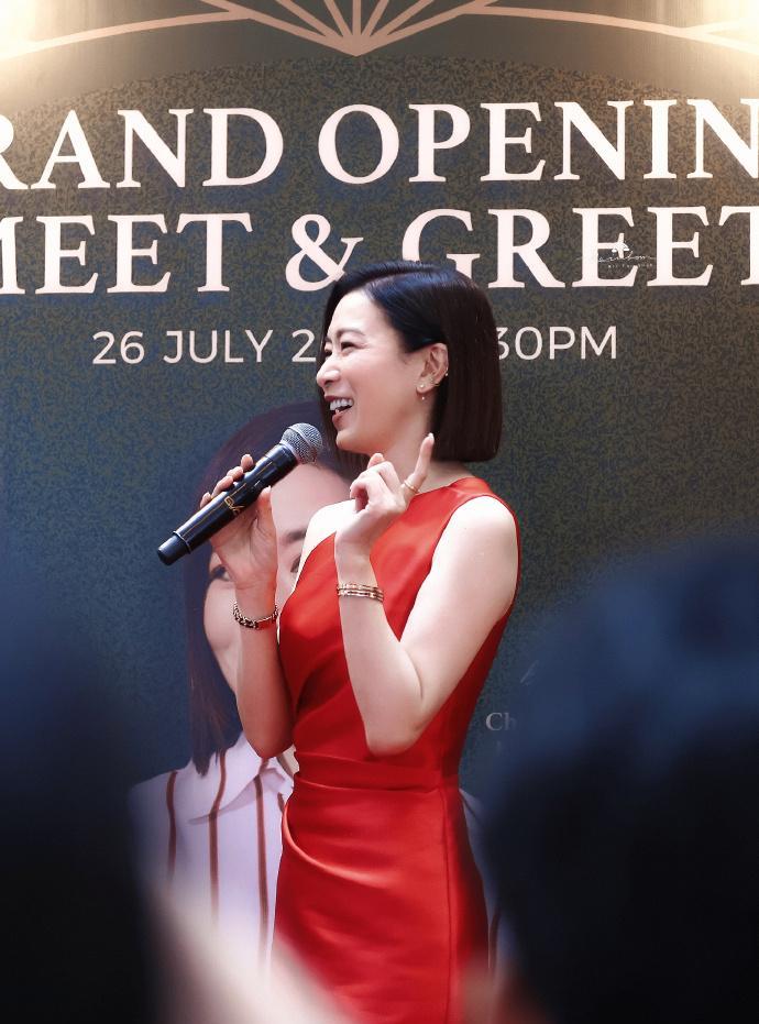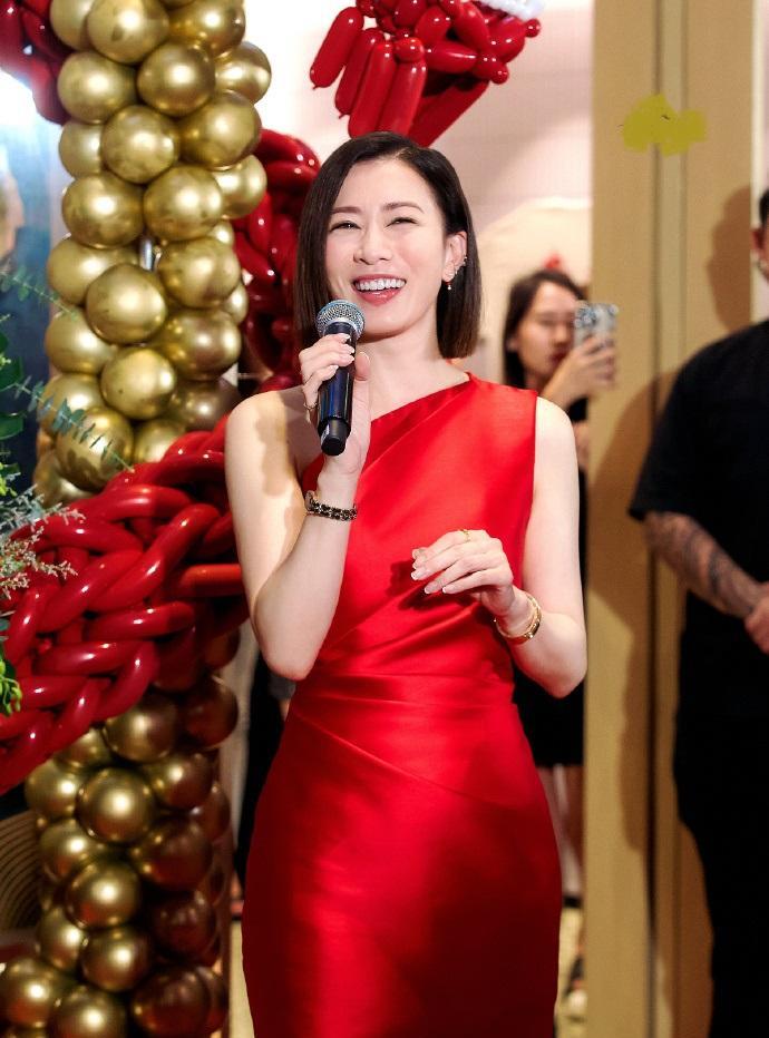 今天佘诗曼在出席时尚活动的时候穿了一件红色的裙子,整个人显得好年轻。 她这回搭配