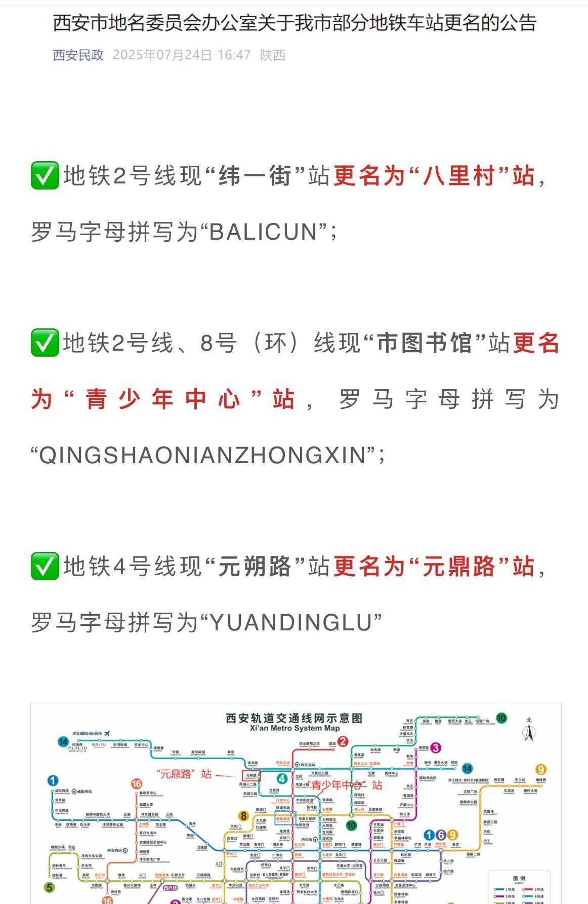 西安地铁2号线纬一街站将改名八里村 西安地铁2号线是西安首条地铁线路 全长33.