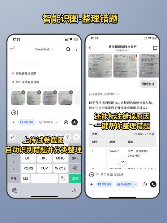上传试卷截图,可以自动识别错题并整理归类,还能标注错误原因,一键帮你整理错题!对于学生党太友好了,复习效率直接起飞!