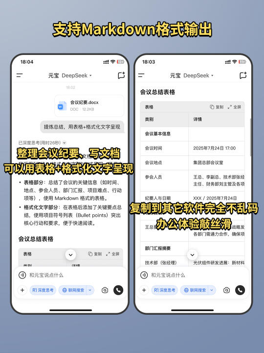 作为一个常和文档打交道的人,支持Markdown输出功能真的太香了!比如让它整理会议纪要,它会自动用表格+格式化文字呈现,复制到其它软件完全不乱码,办公体验敲丝滑!